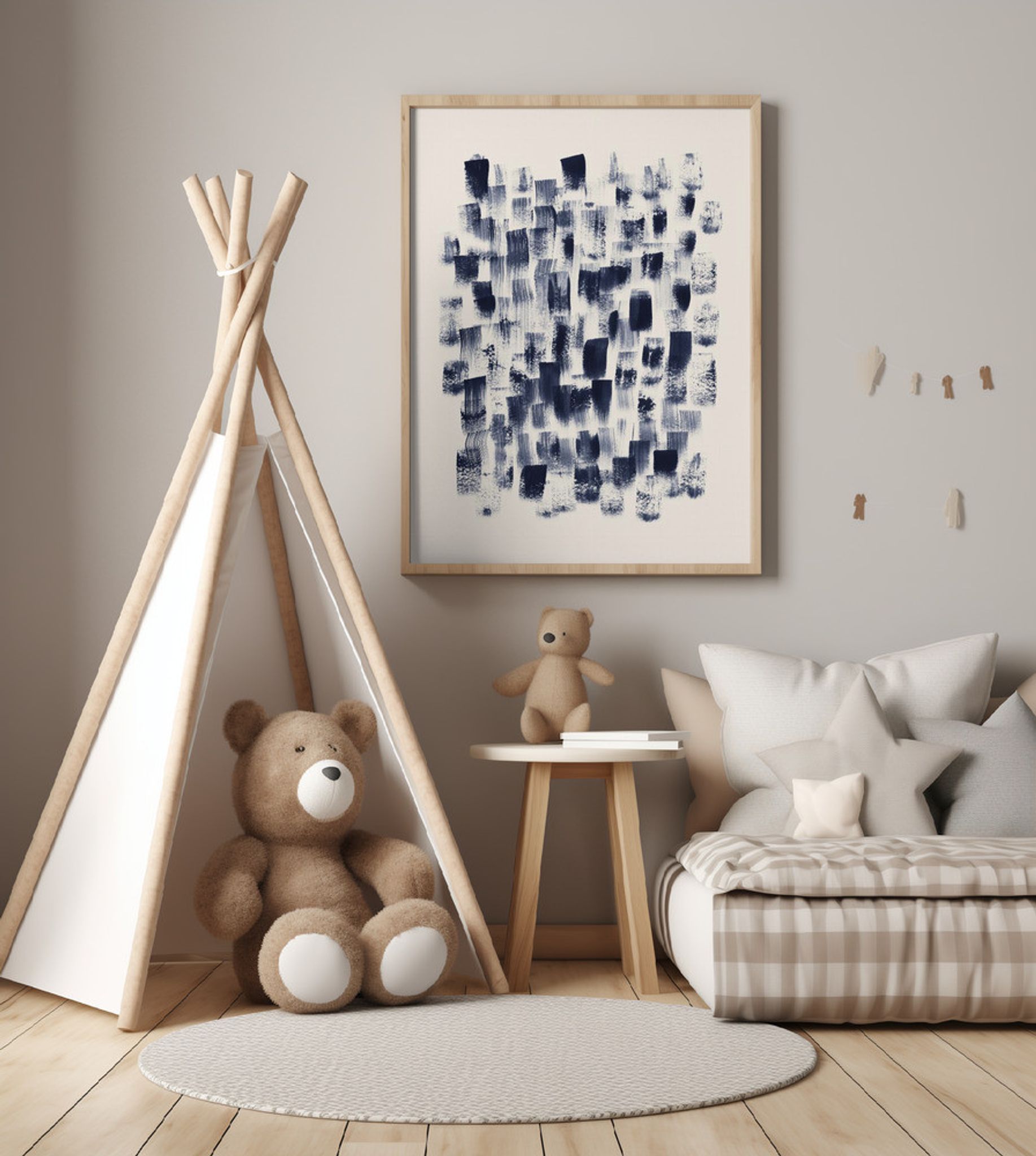 000 Abstract Navy Rain On Cream 24x36