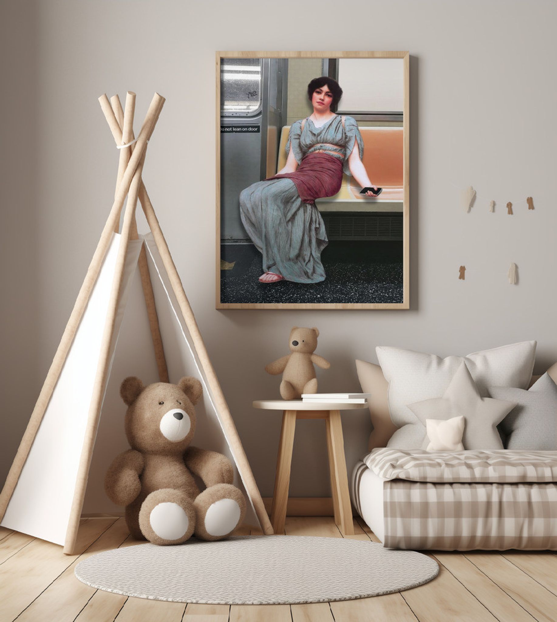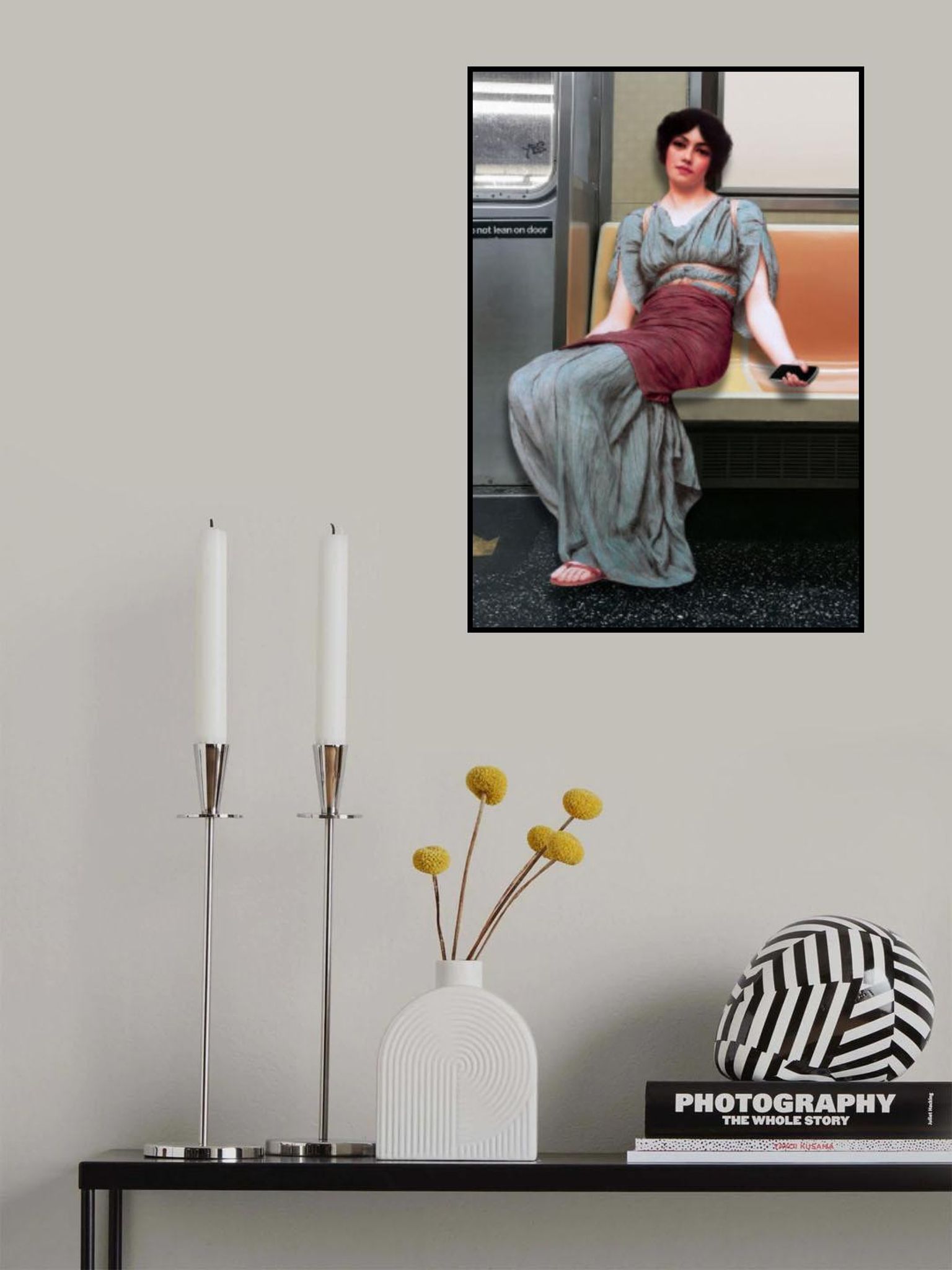 A Woman in Ancient Attire Seated in a Subway