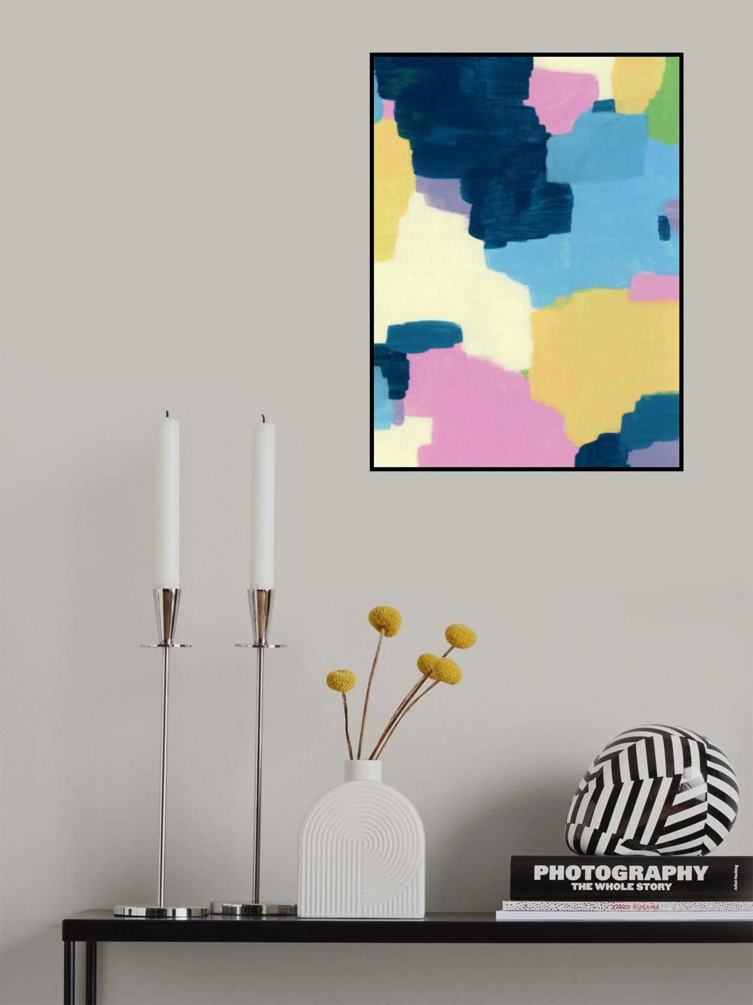 - Biografi: Ejaaz Haniffs konst är fascinerad av färger och former och är ett djärvt och unikt utbud av abstraktioner. Med hjälp av akrylfärger tillsammans med digitala element, är hans design en serie oförglömliga collage. Mittsekelmotiv och stamelement skapar en smak som tilltalar varje sensibilitet. Färgstarka och universellt roliga, hans verk är säker på att ge någon mur till liv.