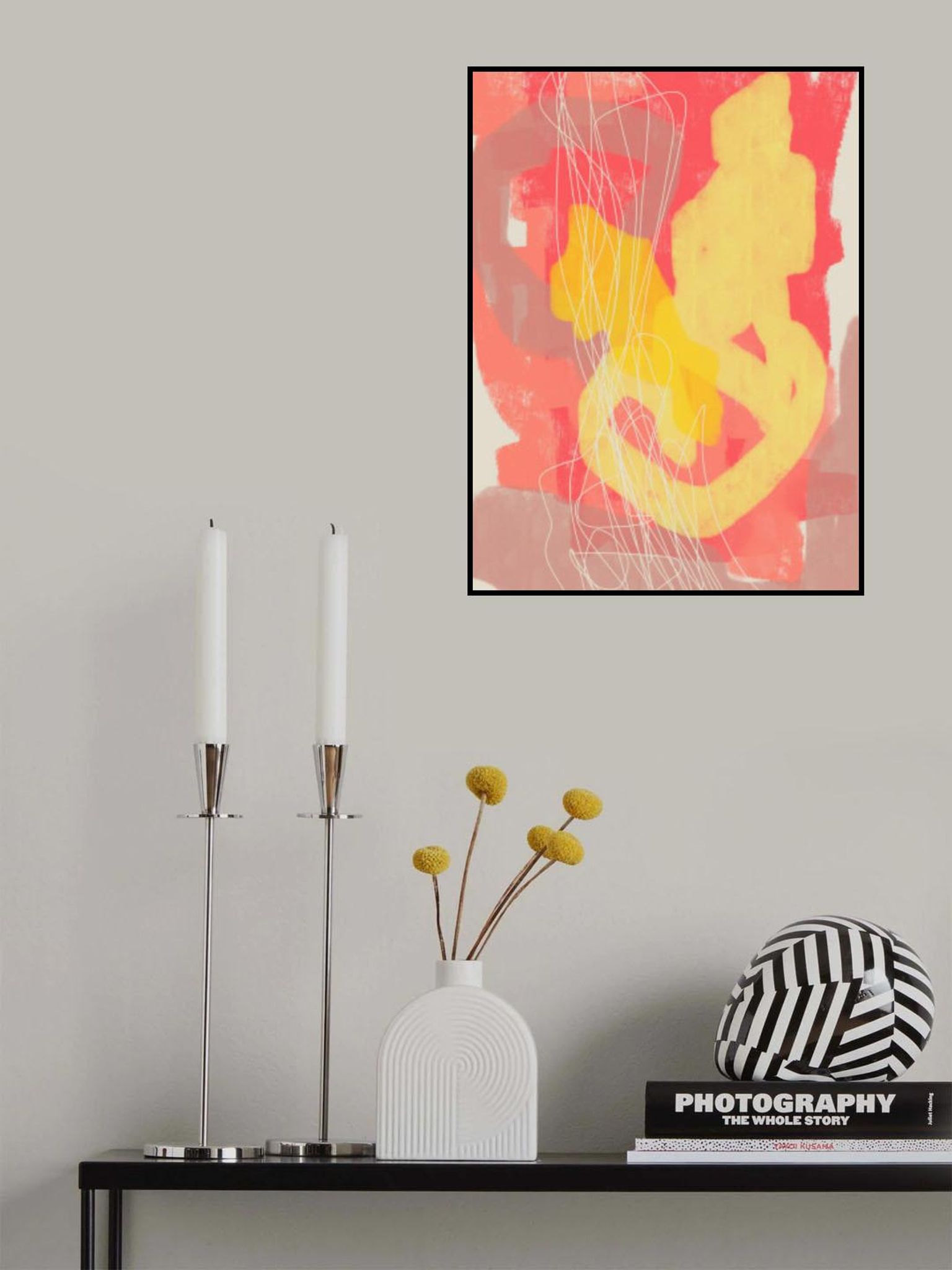 Abstract Painting In Pastel Colors. Yellow, Pink and Orange.