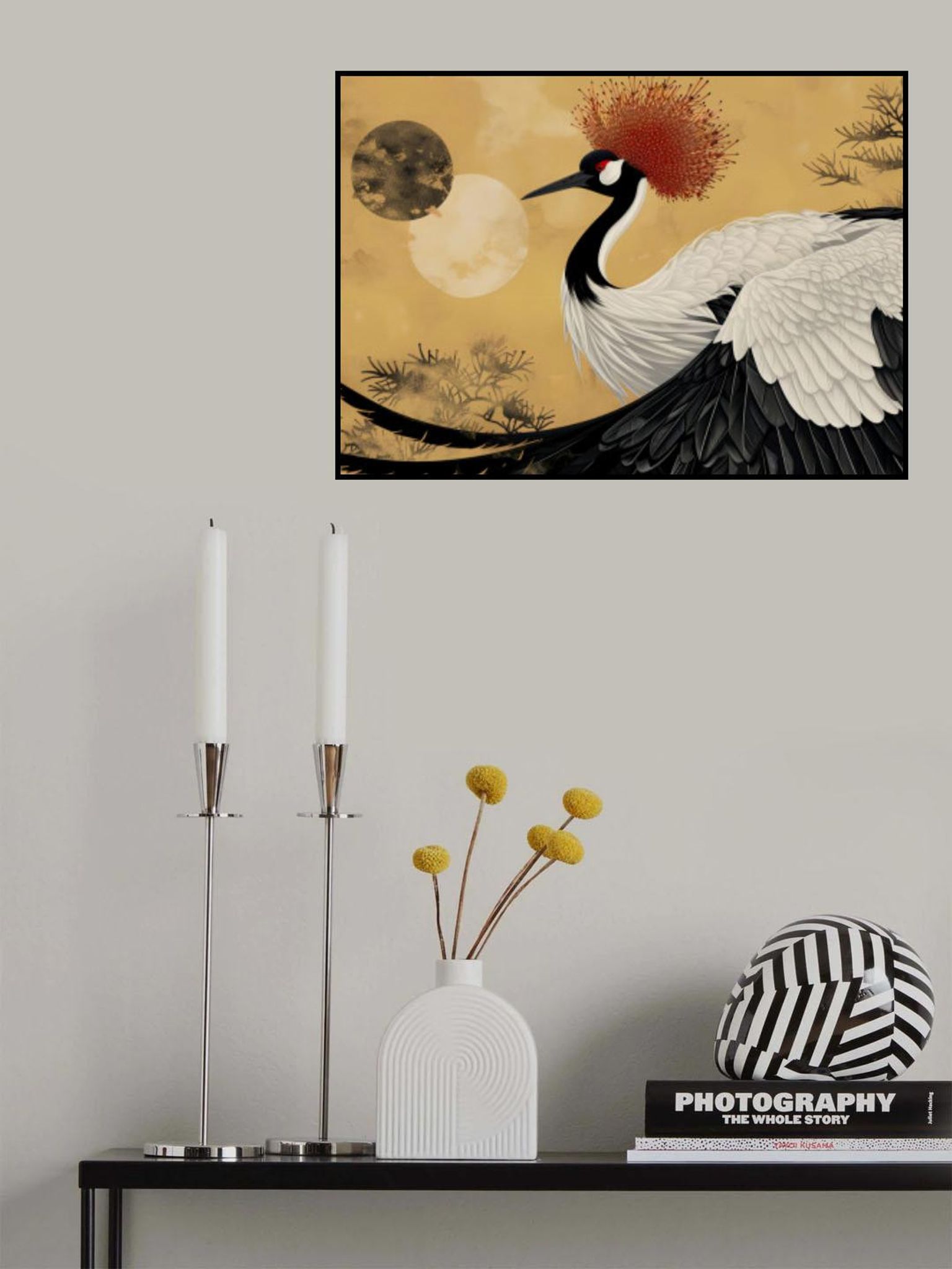 Abstract red-crowned crane