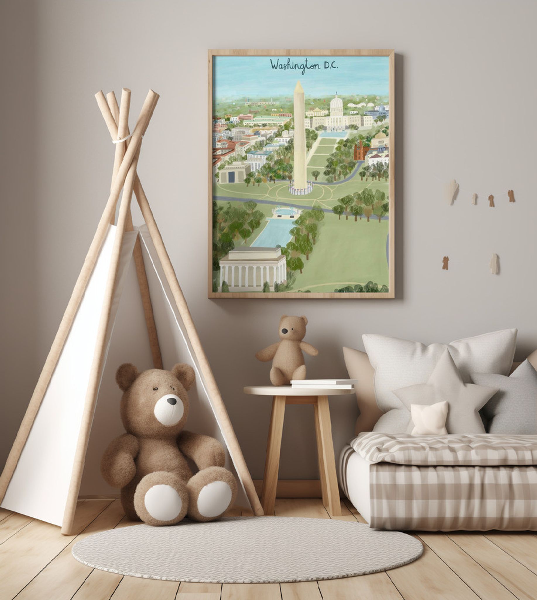Aerial View of the Mall, Washington D.C. Illustrated by Artist Carla Daly