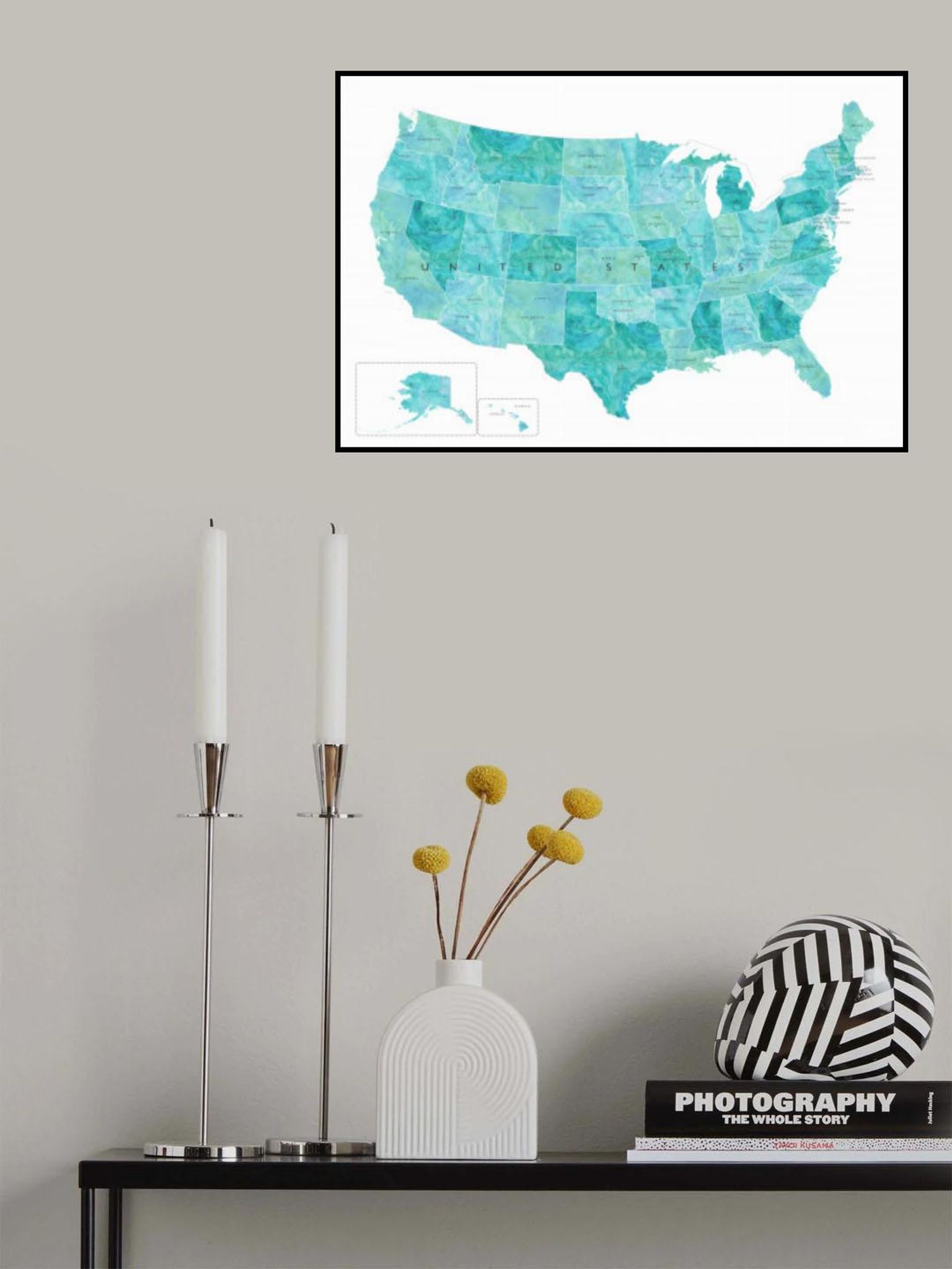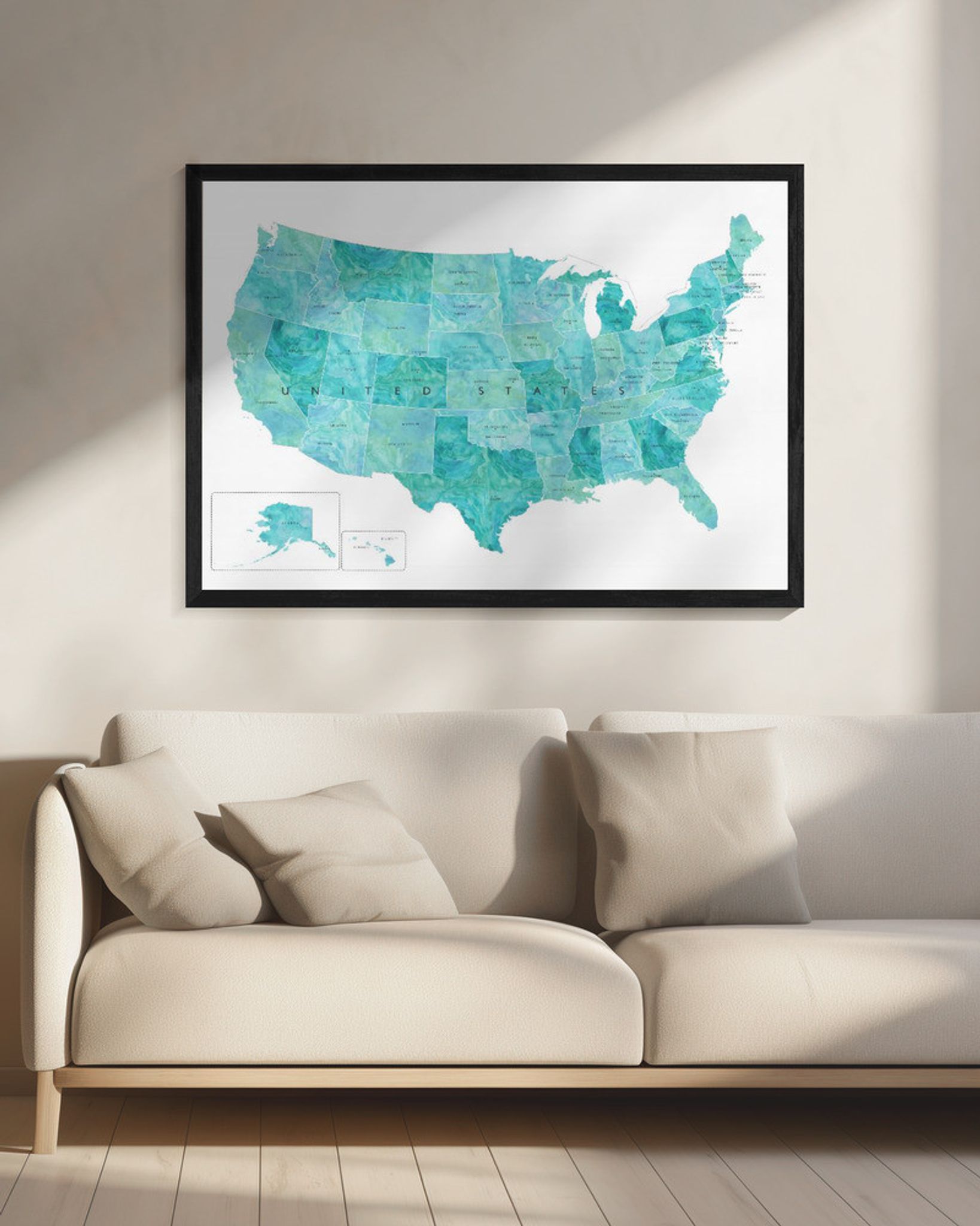 Aquamarine watercolor US map