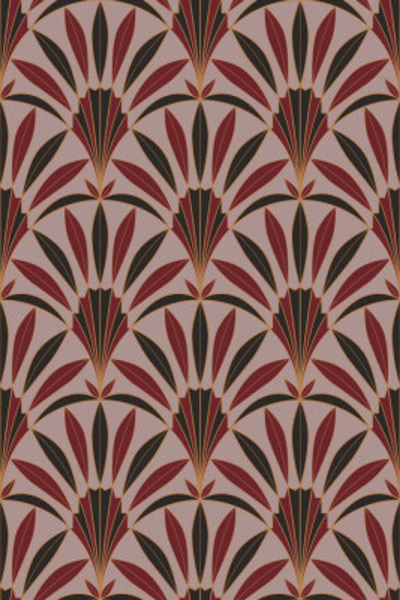 Art Deco Palm Leaves Fan Syrah Red