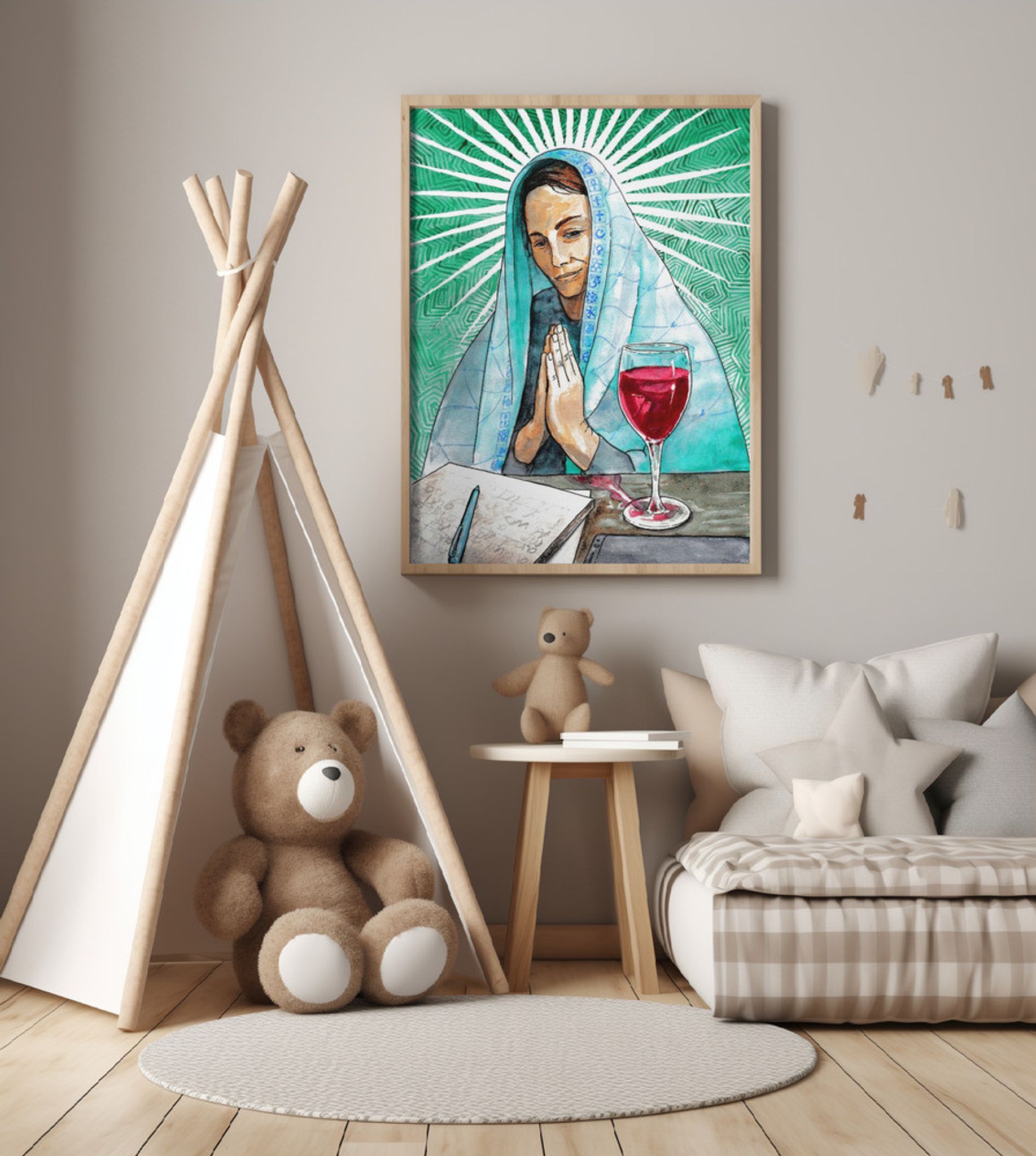 AW Maria. Holy Drink Watercolor Portrait.