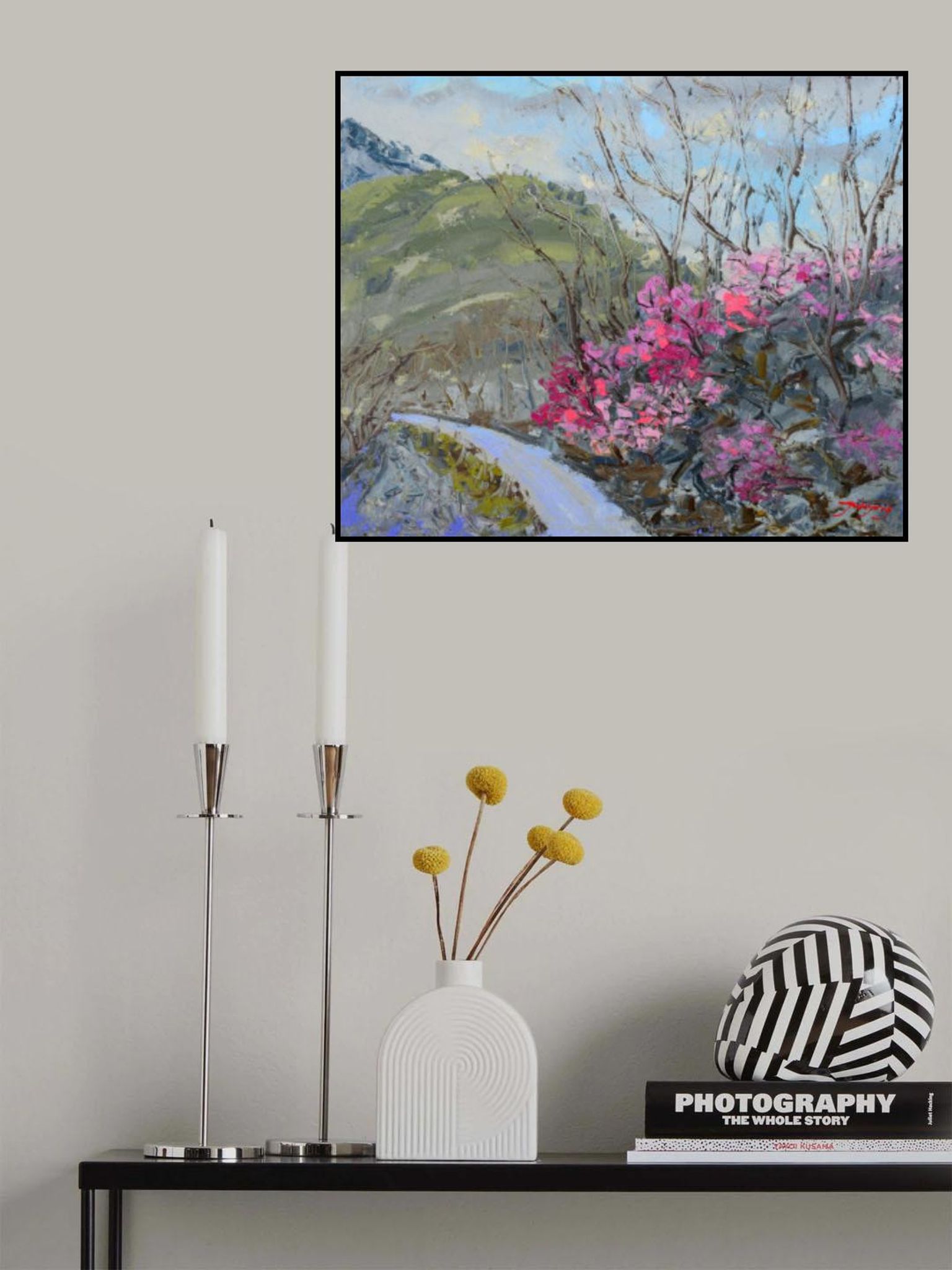 Azaleas Blooming On the Mountain Oil On Canvas