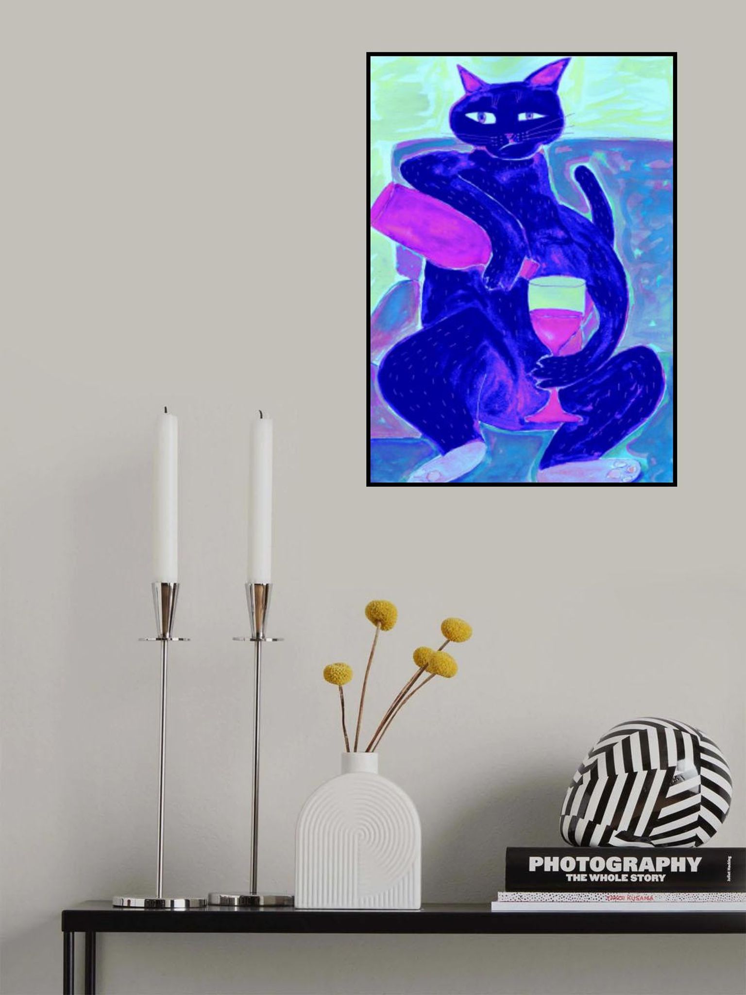 - Biografi: Sharyn Bursic är en självlärd, naiv bildlig konstnär vars verk fångar skönheten och humorn i vardagen. Med ett lekfullt och intuitivt tillvägagångssätt, skapar Sharyn livfulla, känsloladdade målningar med hjälp av en rad olika medier, inklusive akvarell, akryl och olja. Hennes arbete är fyllt med nyckfulla men hjärtliga skildringar av vardagliga ögonblick – oavsett om det är en katt som ligger på knä, människor som njuter av en lugn kväll med ett glas vin, eller djur fångas i en uppriktig, avslappnad stund. Sharyns distinkta stil ger en känsla av värme och charm till bekanta scener, ofta infunderad med en subtil känsla av humor. Hennes figurativa verk är både intima och tillgängliga, inbjudande tittare att se de extraordinära i de enkla, dagliga aktiviteter som definierar våra liv. Förutom hennes bildliga bitar, utforskar hon också abstrakt målning, där hennes lekfulla användning av färg och form fortsätter att återspegla den glädje hon finner i världen runt henne.