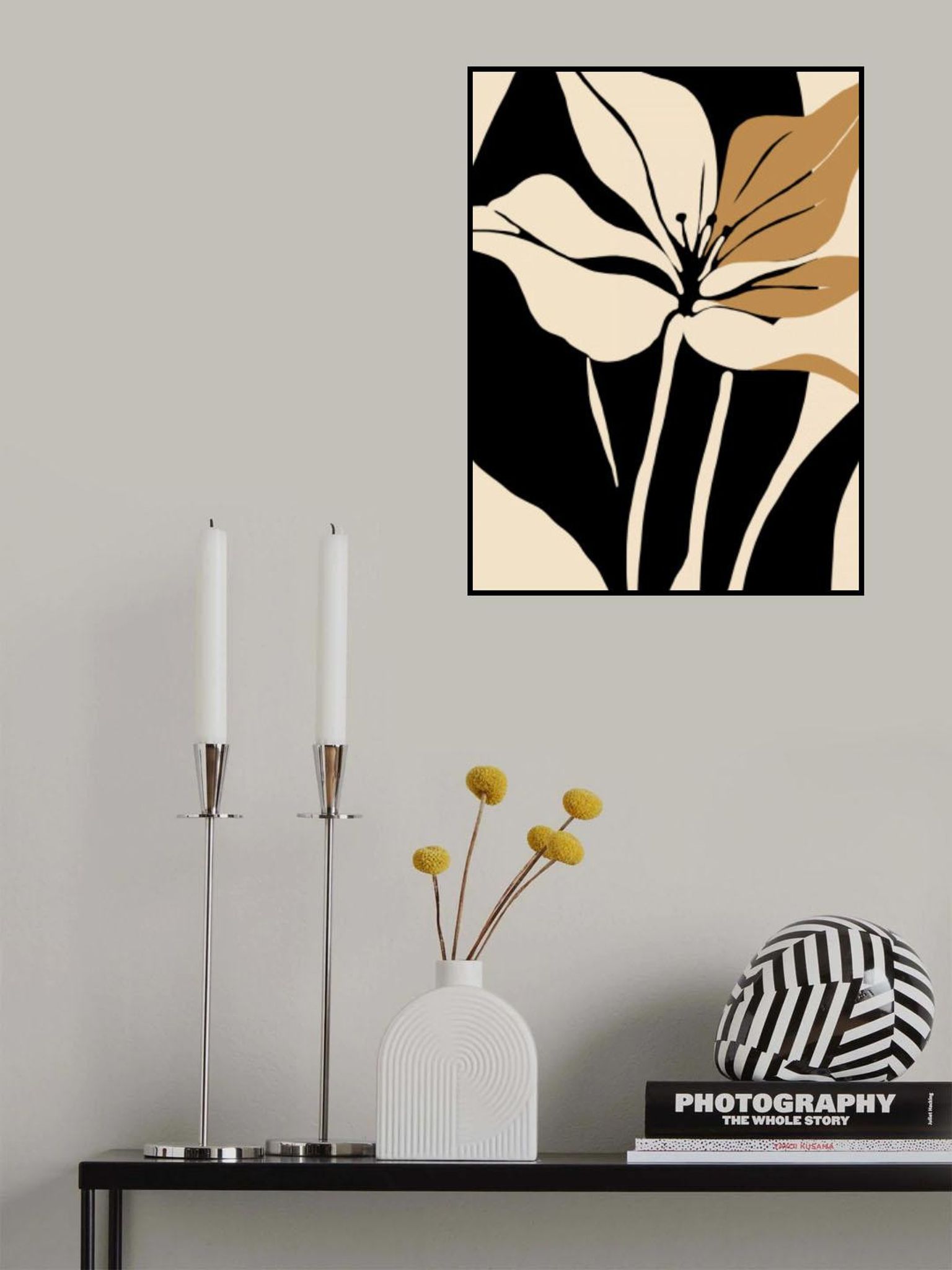Black and beige floral