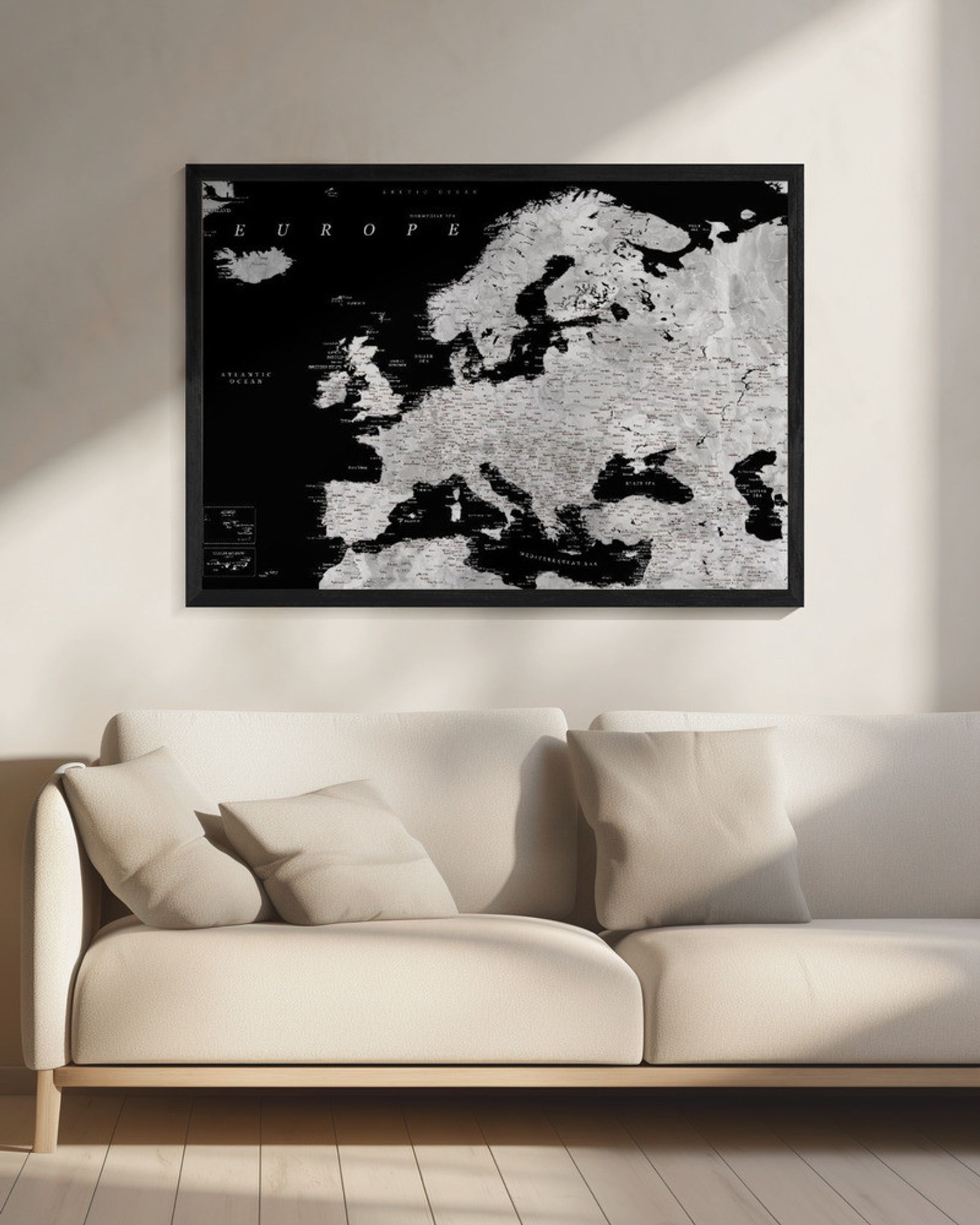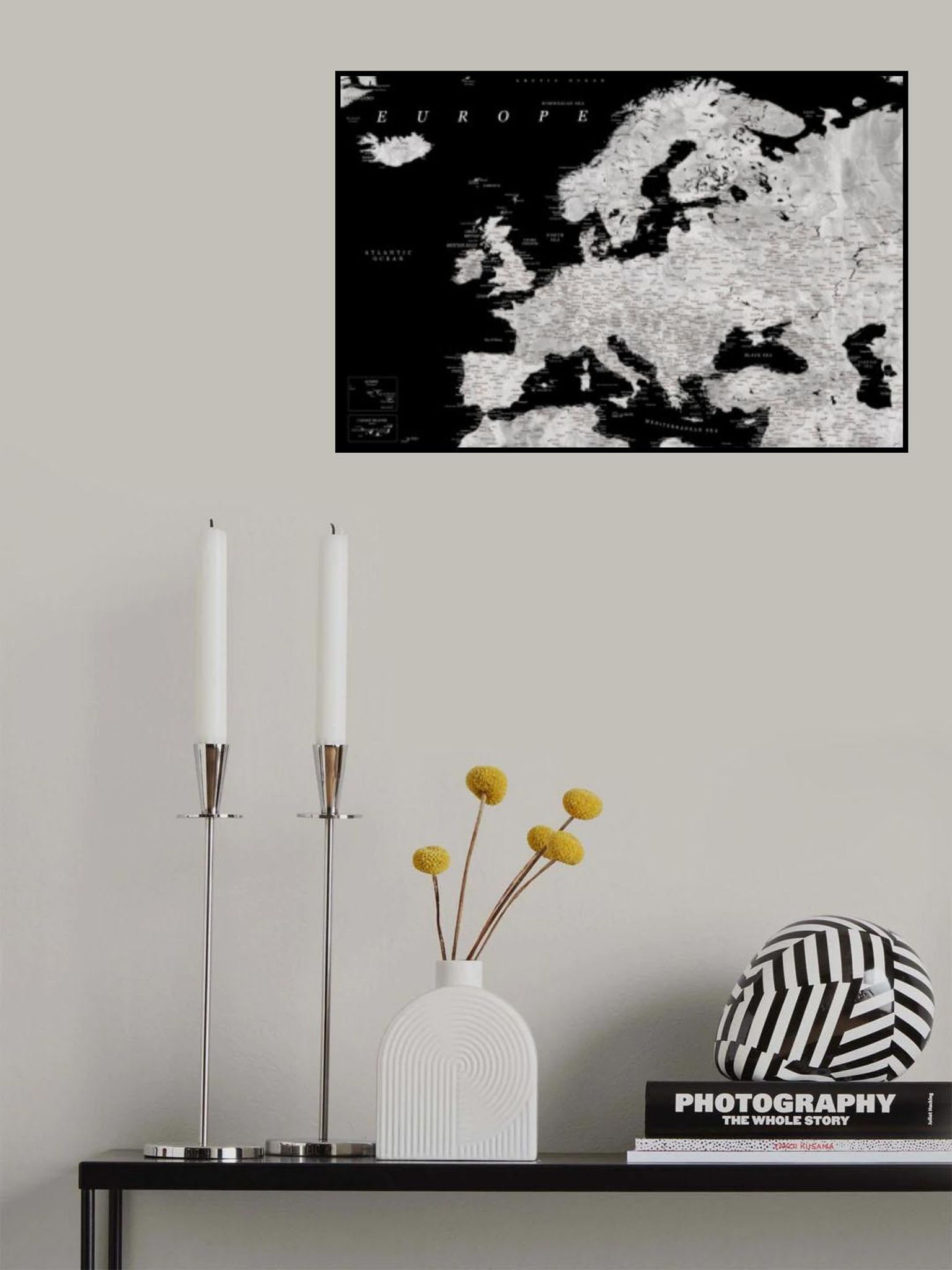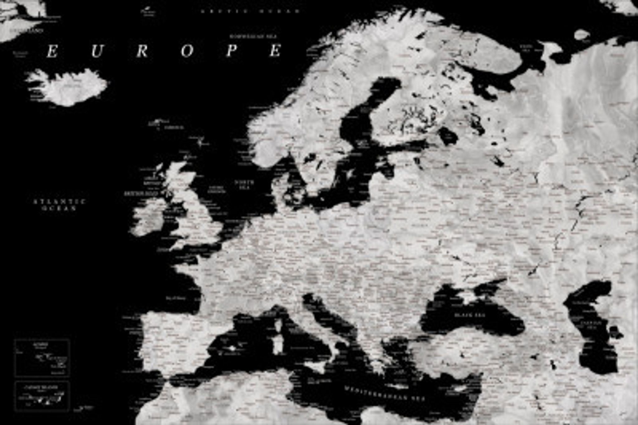 Black and grey detailed map of Europe