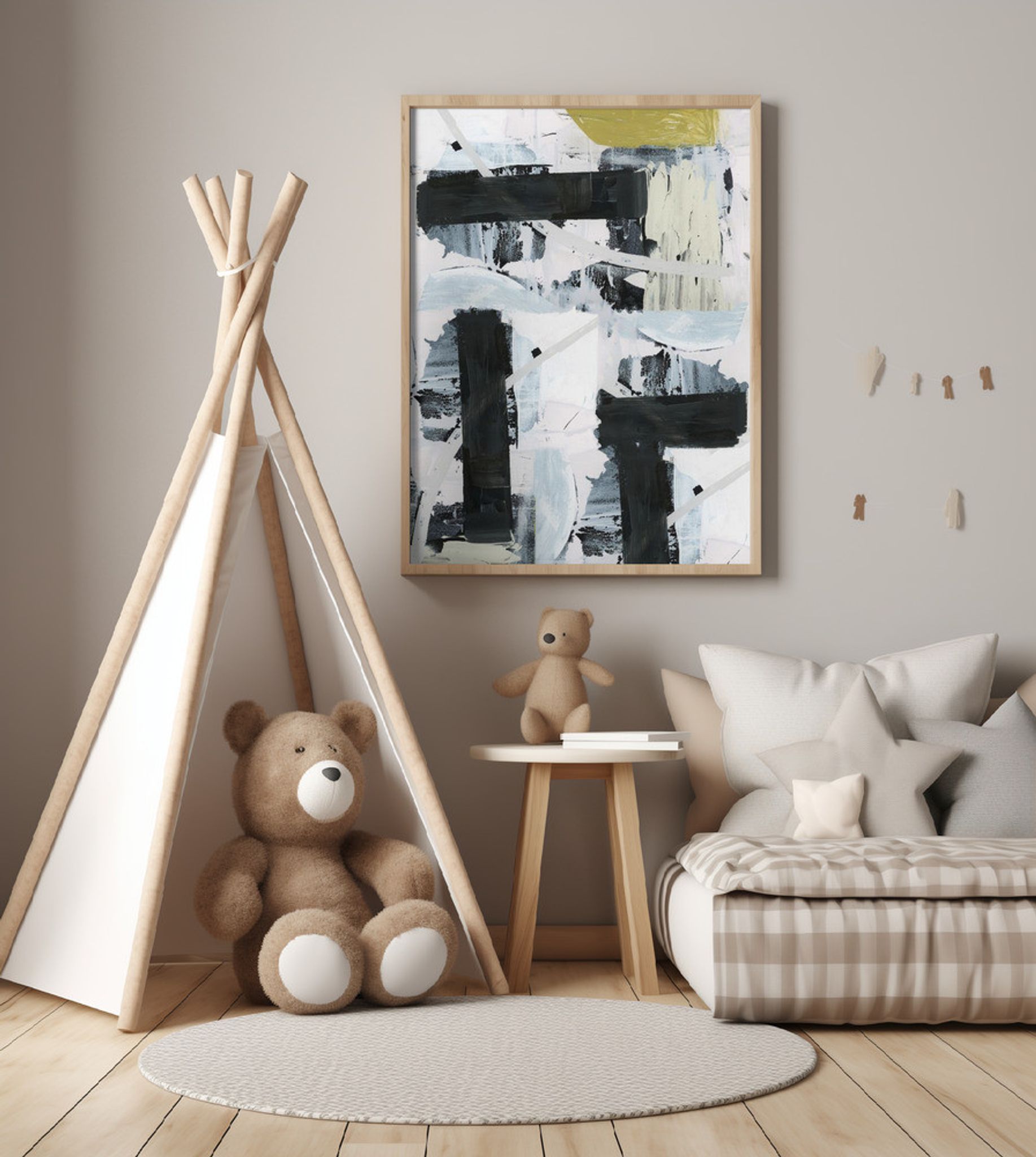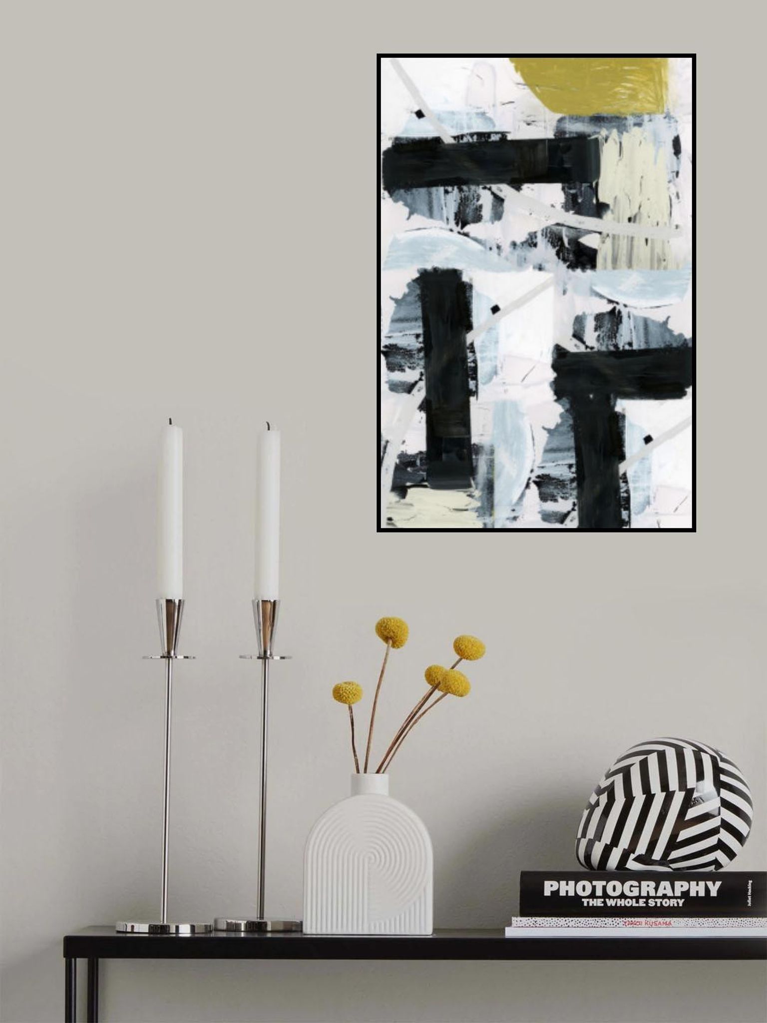 Black and White and Gold Abstract 1