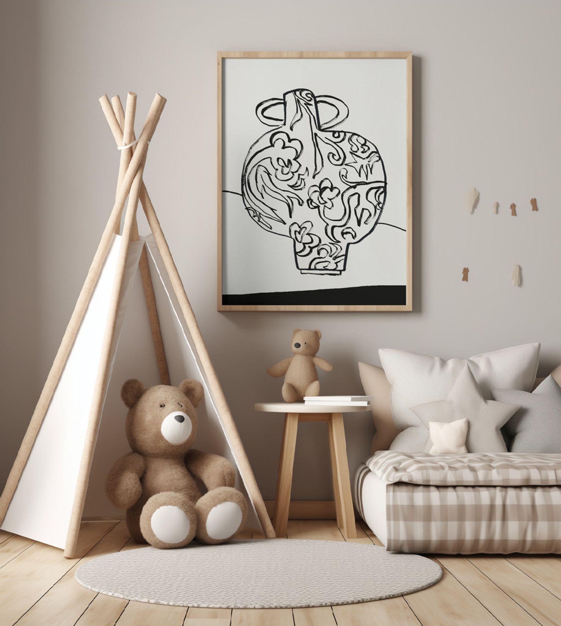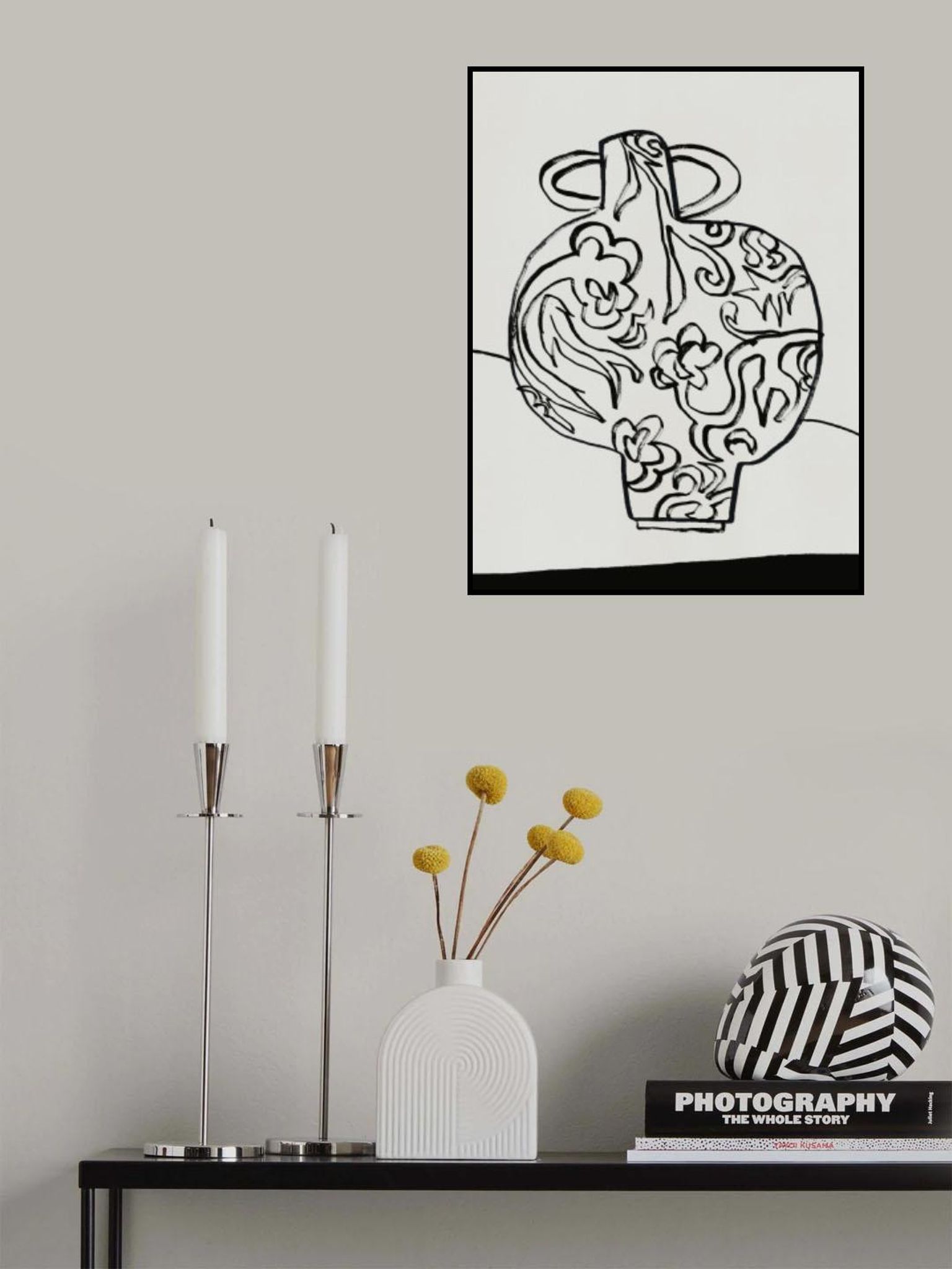 Black and White Floral Vase