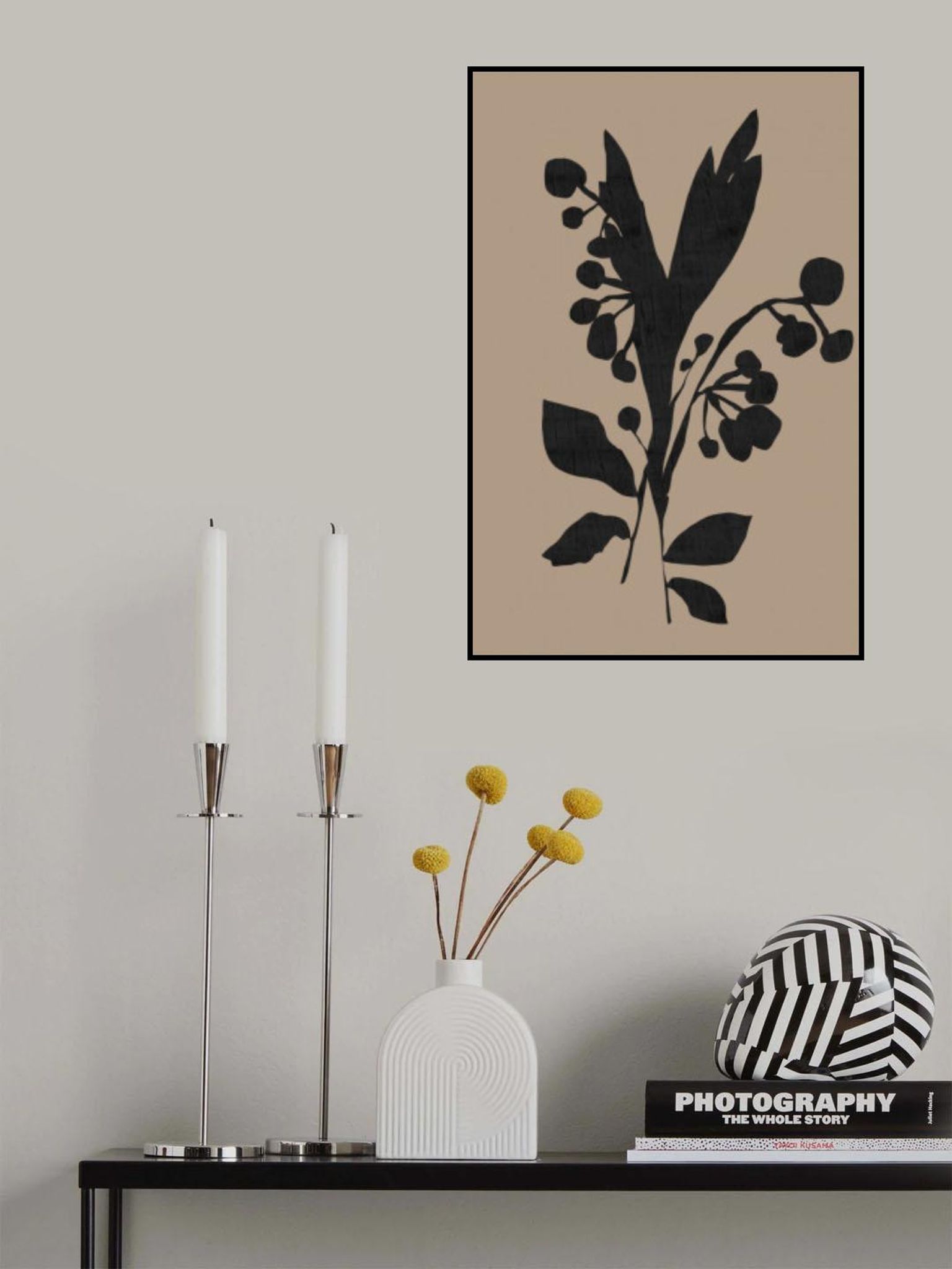 Black Floral Buds Modern Botanical Silhouette