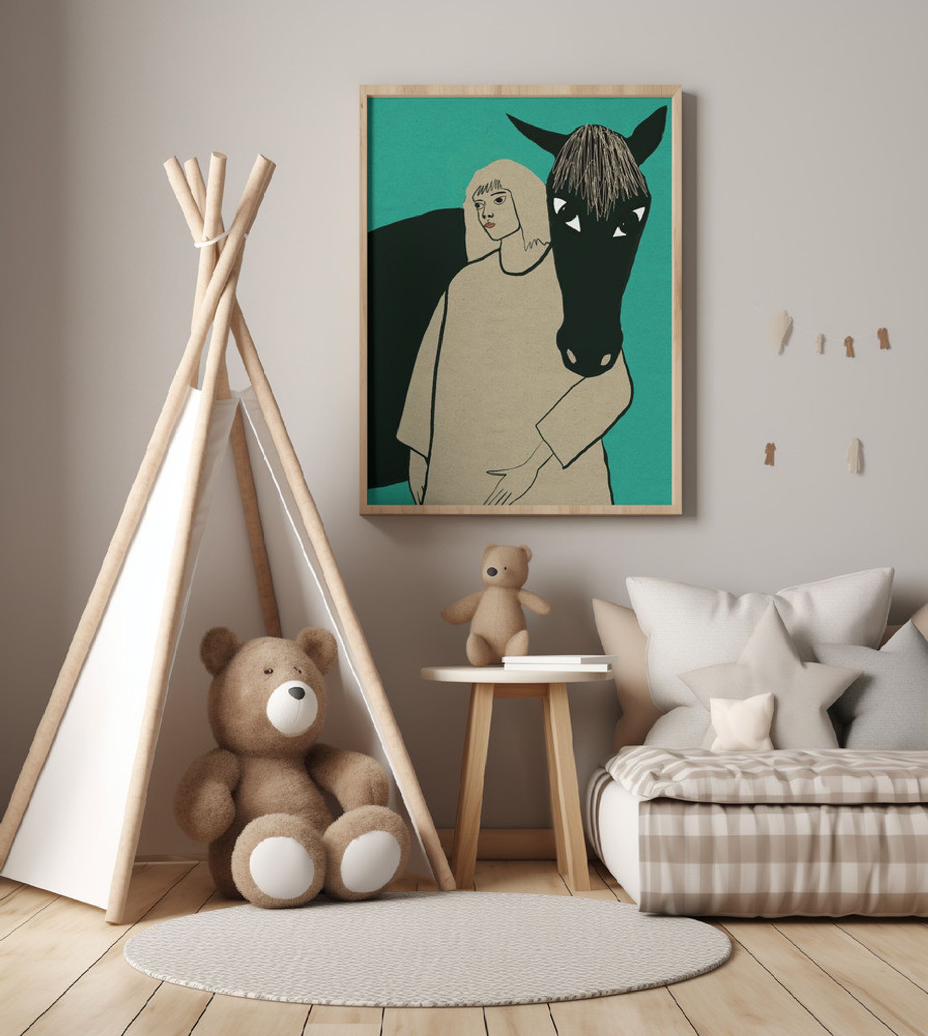 Black horse and woman