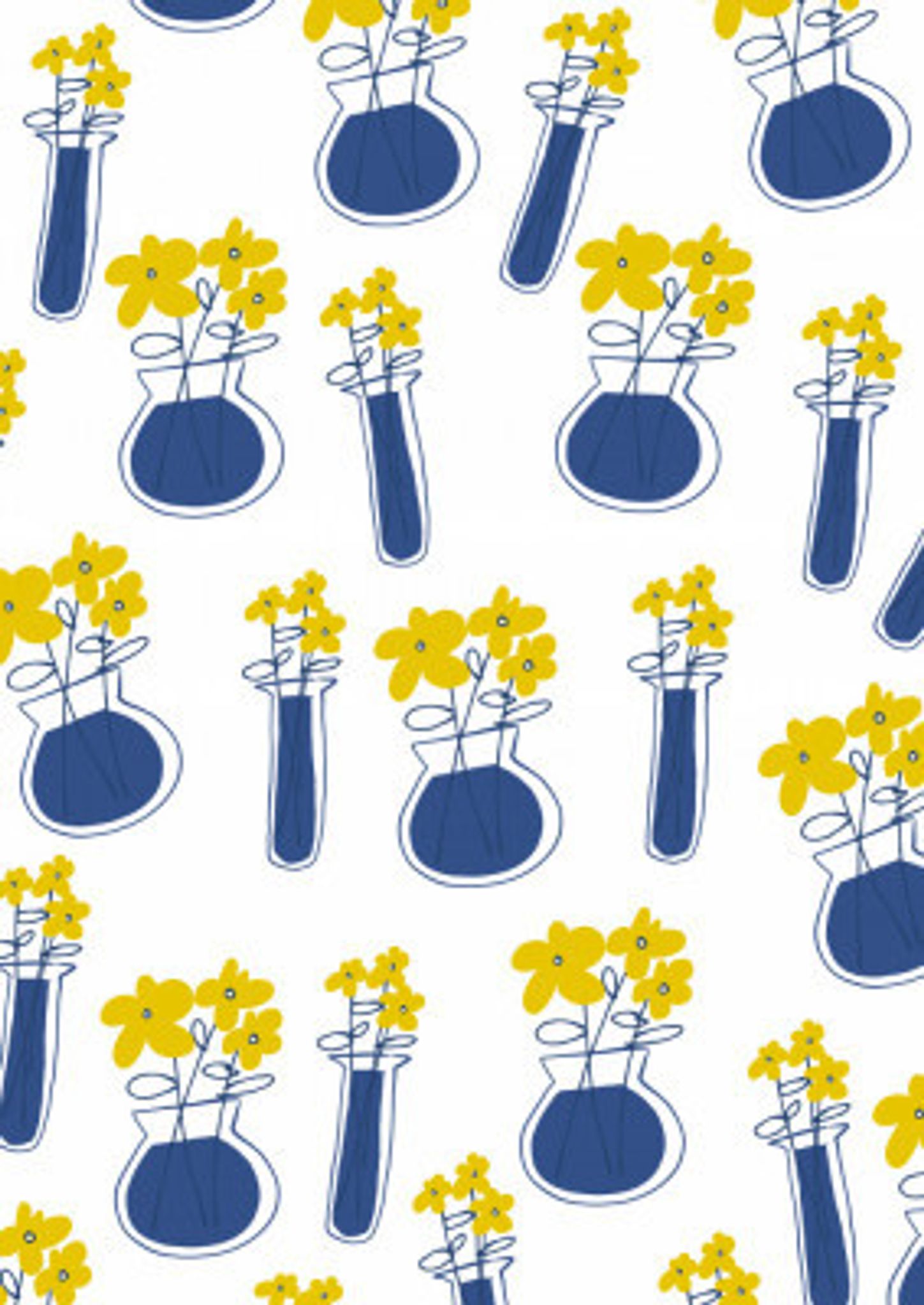 Blue Vases With Minimalist Yellow Flowers