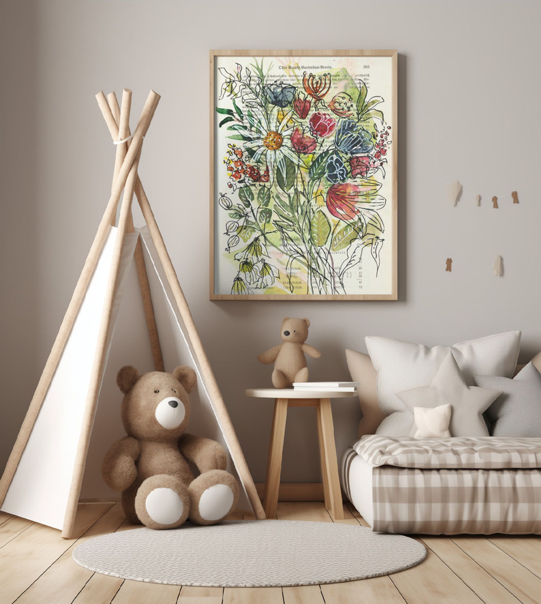 Bouquet of wildflowers Watercolors and ink