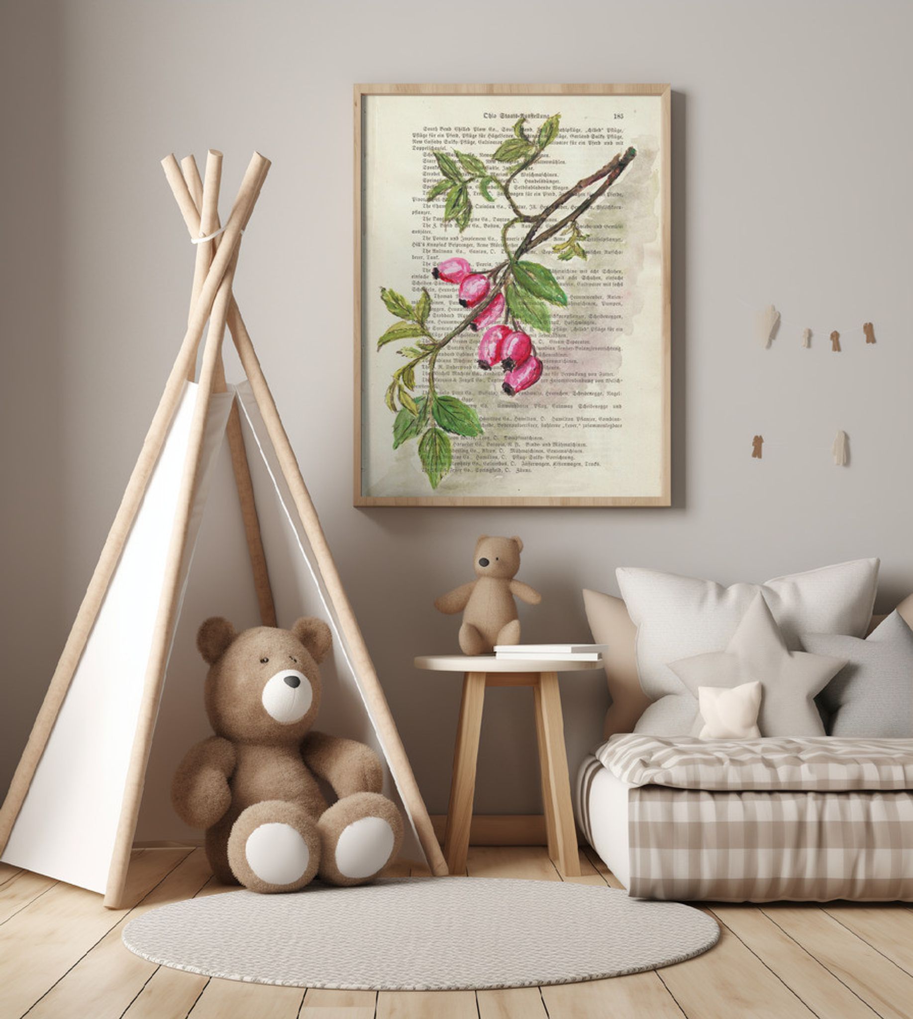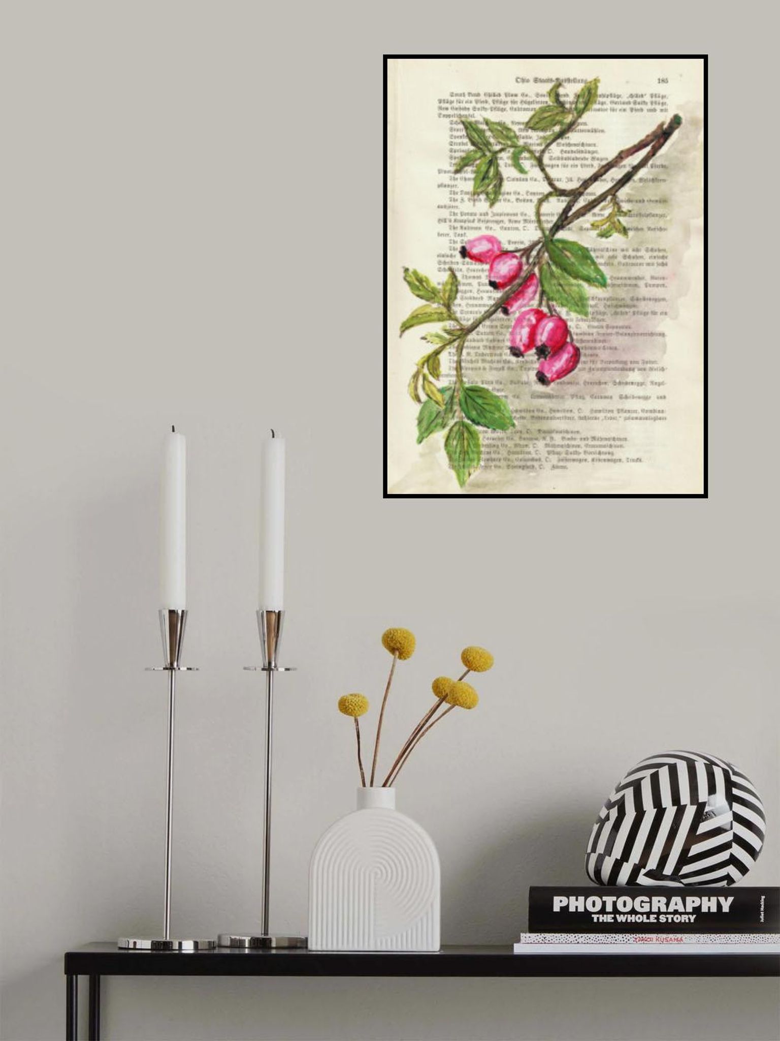 Branch with rosehip berries watercolor Nature study