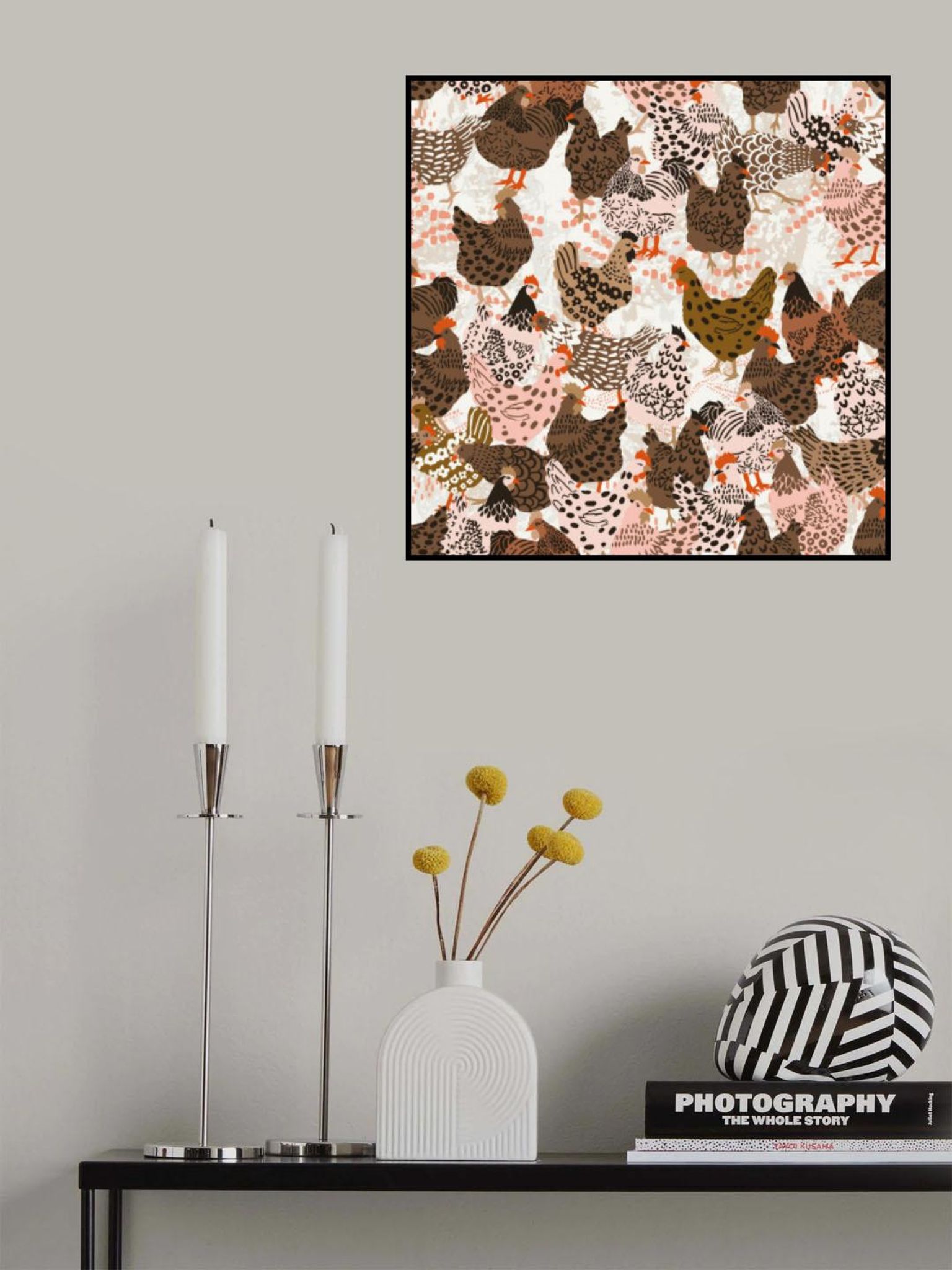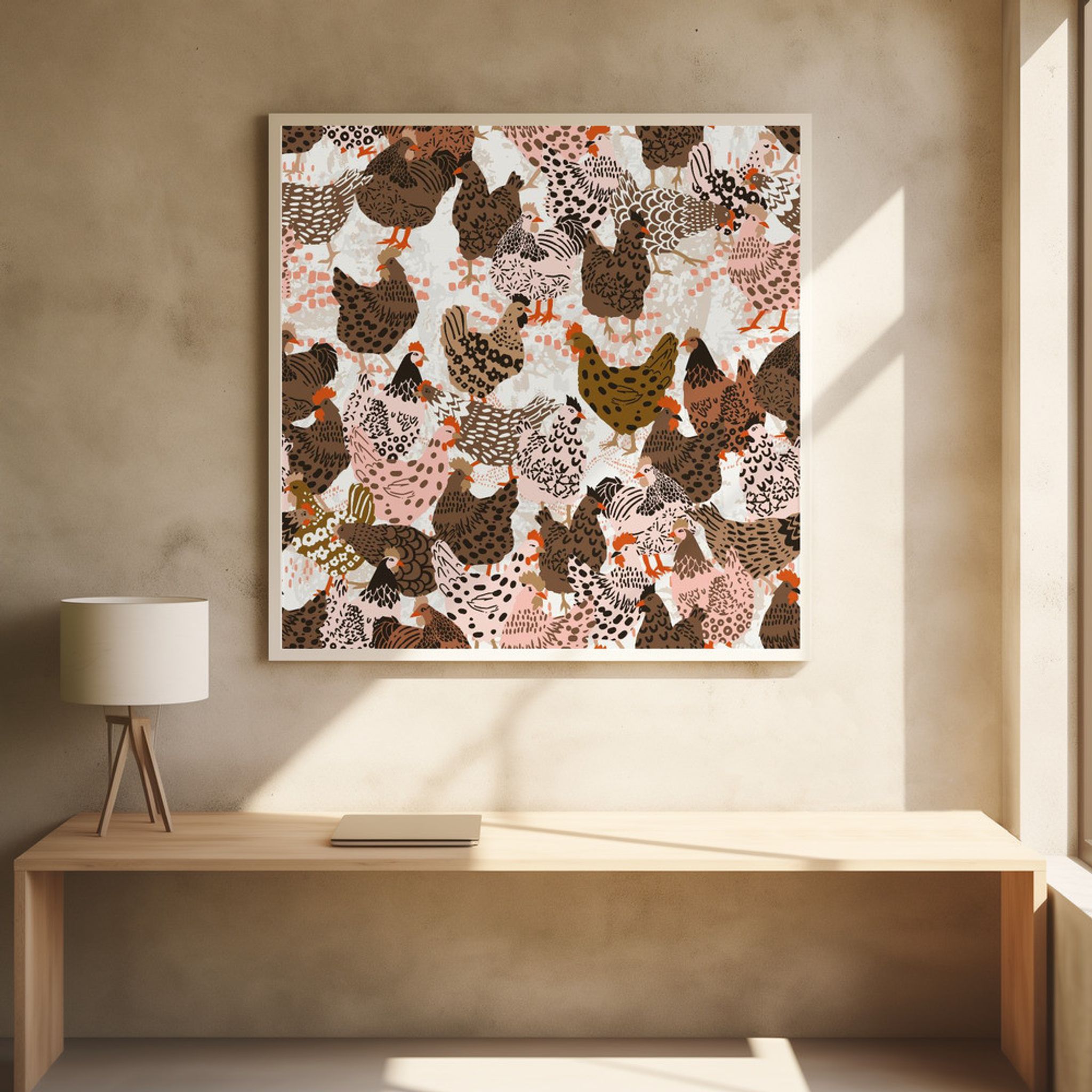 Brown chicken family pecking on the ground pattern