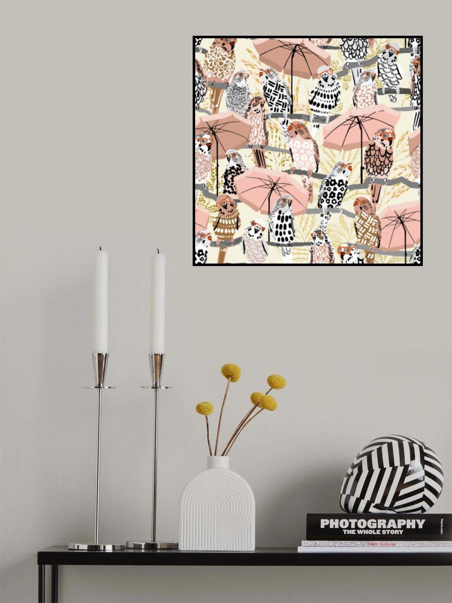 budgie on vacation cream white pattern