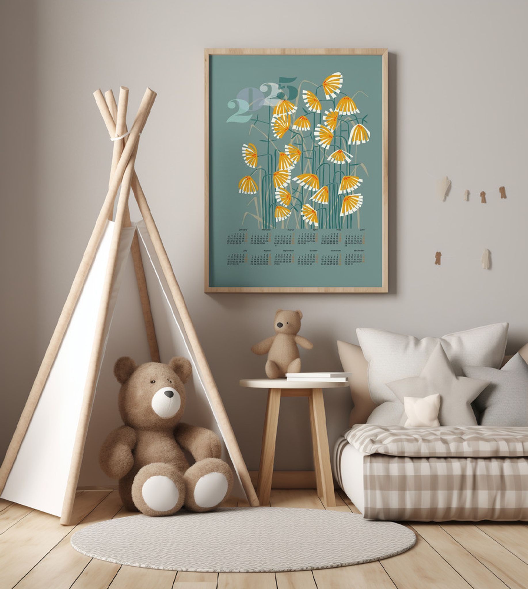 calendar 2025 Linocut flowers green