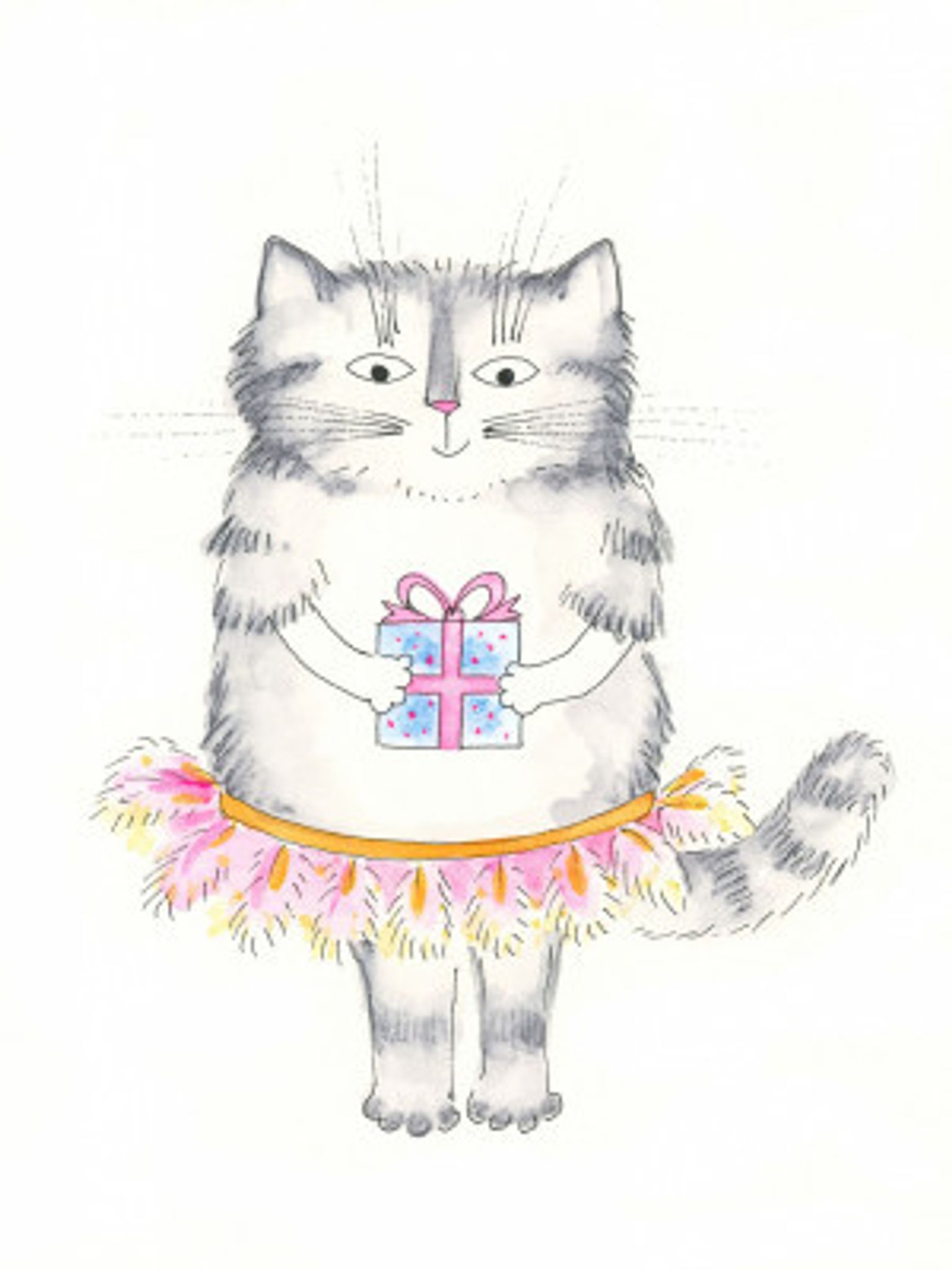 Charming Cat In A Tutu Holding A Gift