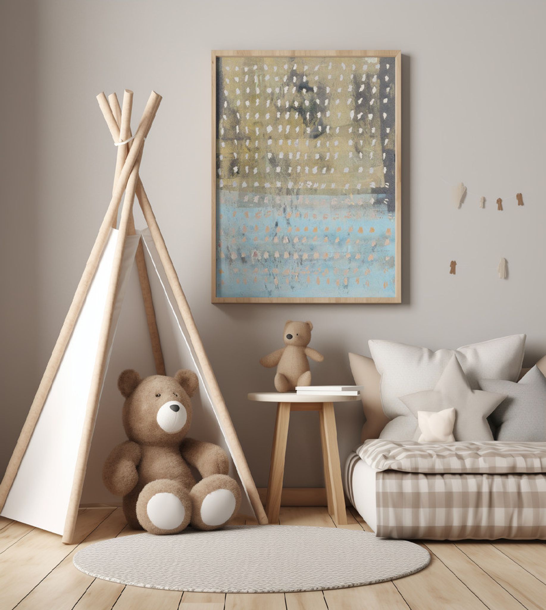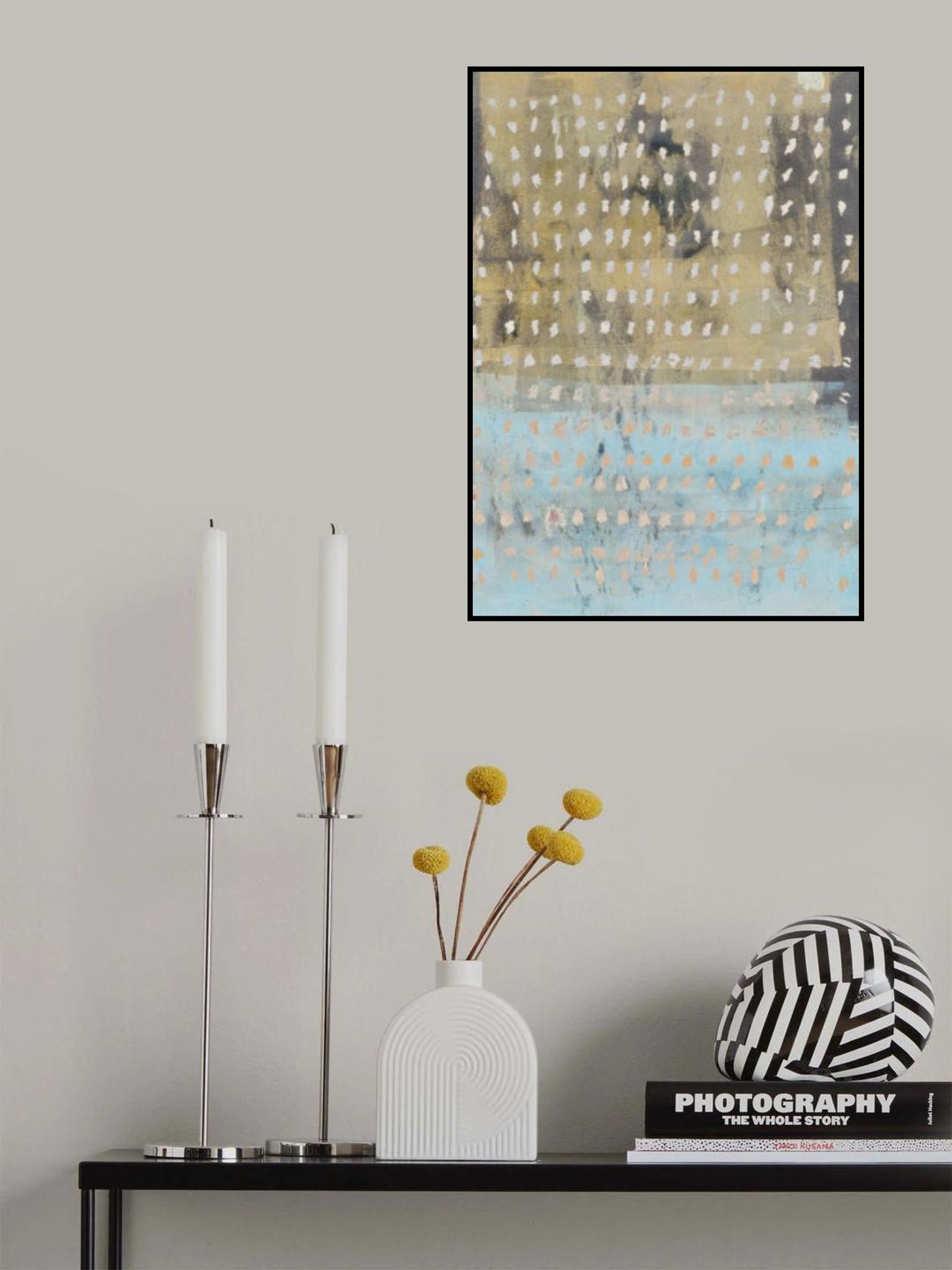 Contemporary Abstract In Yellow, Taupe, Light Blue