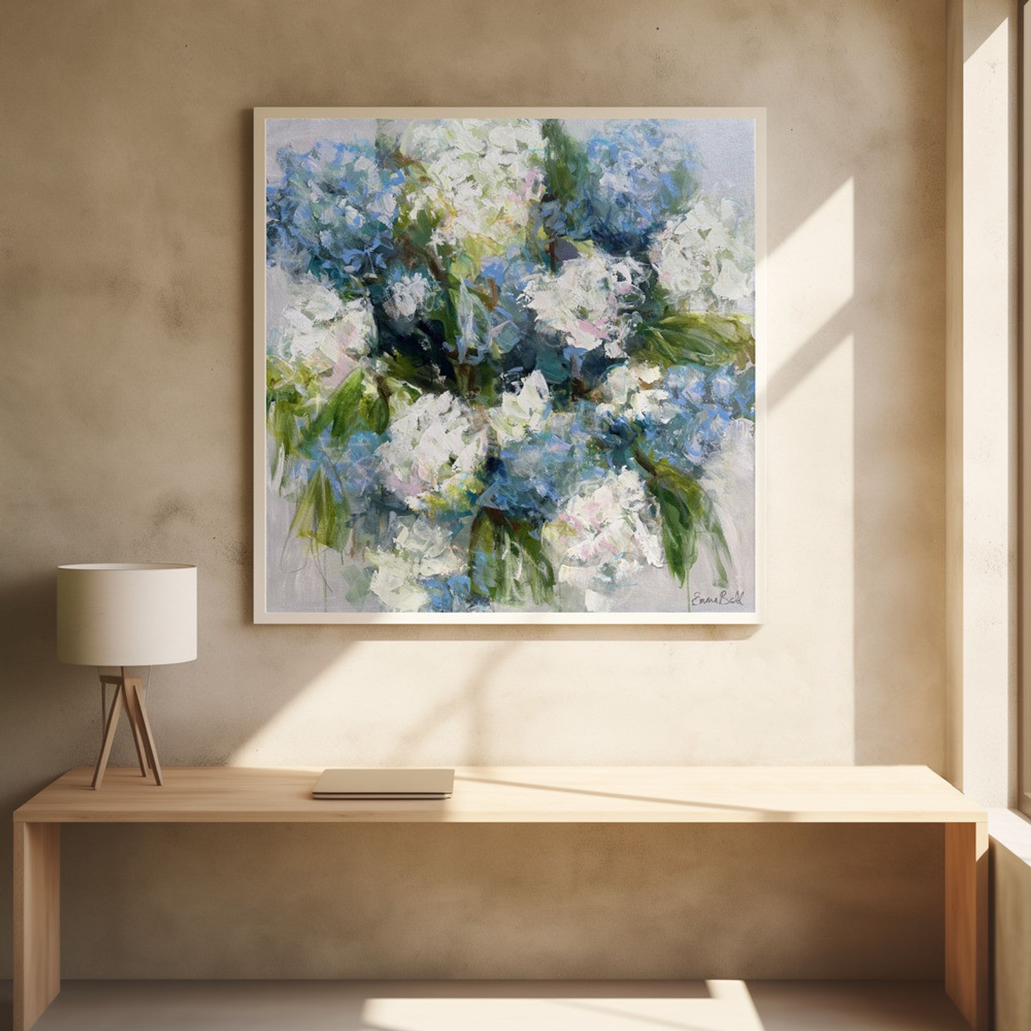 - Biografi: Emma har utvecklats från en familj av konstnärer och har blivit mycket uppmuntrad och inspirerad av konstnärlig påverkan hela sitt liv. År 2009 en flytt från Storbritannien till Atlanta GA med hennes makes jobb, innebar att hon kunde ta till sina borstar och palettkniv mer permanent och förvandla en livslång hobby till en blomstrande karriär. Emma, fru och mor till två unga pojkar, finner inspiration för hennes målningar runt omkring henne. Hon älskar att måla vackra saker som make us all feel glad. Emmas arbete är främst påverkas av blommor och strand scener samt ljusa, djärva och vackra färger. Hennes arbete har utvecklats från en traditionell och impressionistisk blommig stil, till en mer abstrakt och fri format. Samtidigt skapa mycket lösa lager av akryl, kol, olja pastell och grafit på duken, hennes arbete fortfarande håller form, textur och form av blommor, producerar sin unika och distinkta stil.
