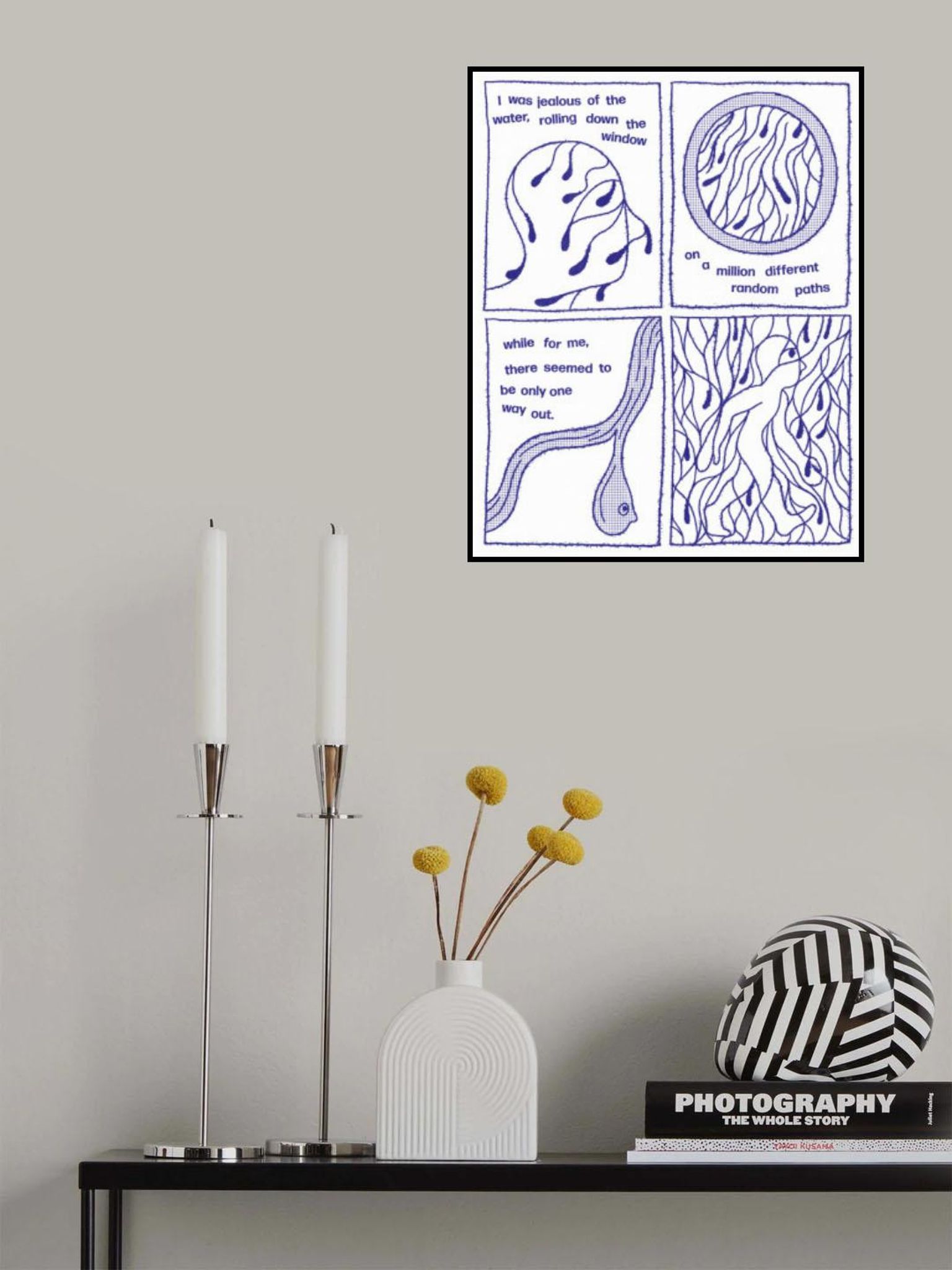 - Biografi: Eric Schwarz är en konstnär känd för att skapa suggestiva och introspektiva verk som genljuder på ett djupt emotionellt plan. Erics verk, som hämtar inspiration från den mänskliga känslans och naturens invecklingar, utforskar ofta teman som balans, tillväxt och introspektion. Hans unika stil blandar djärva linjer med mjuka, flödande former för att skapa visuellt slående kompositioner som inbjuder tittarna att både känna och reflektera. Som en självlärd konstnär fortsätter Eric att driva på gränserna för samtida konst, konsthantverk som inte bara pryder utrymmen utan också väcker meningsfulla samtal.