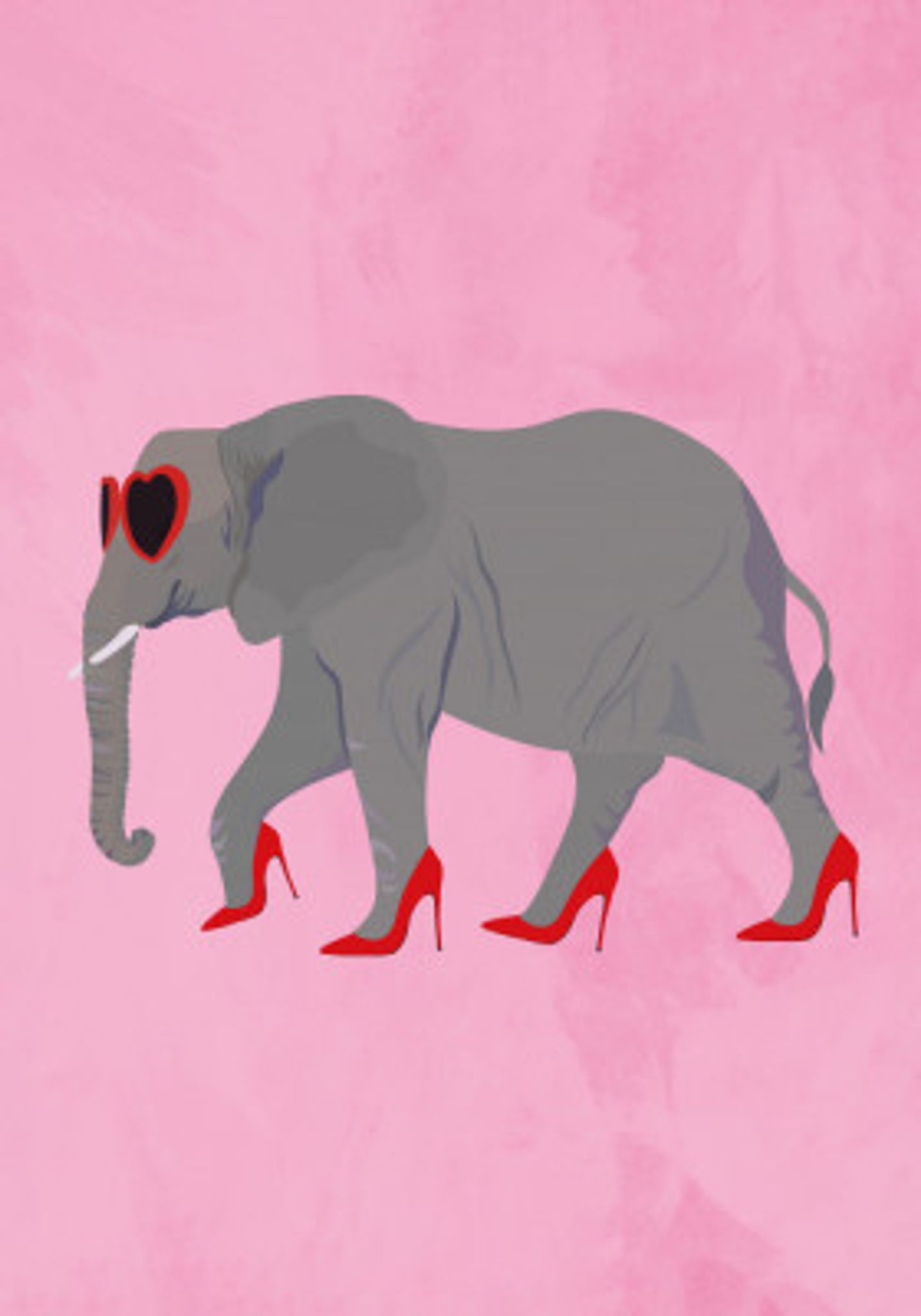 Elephant in heels and heart glasses