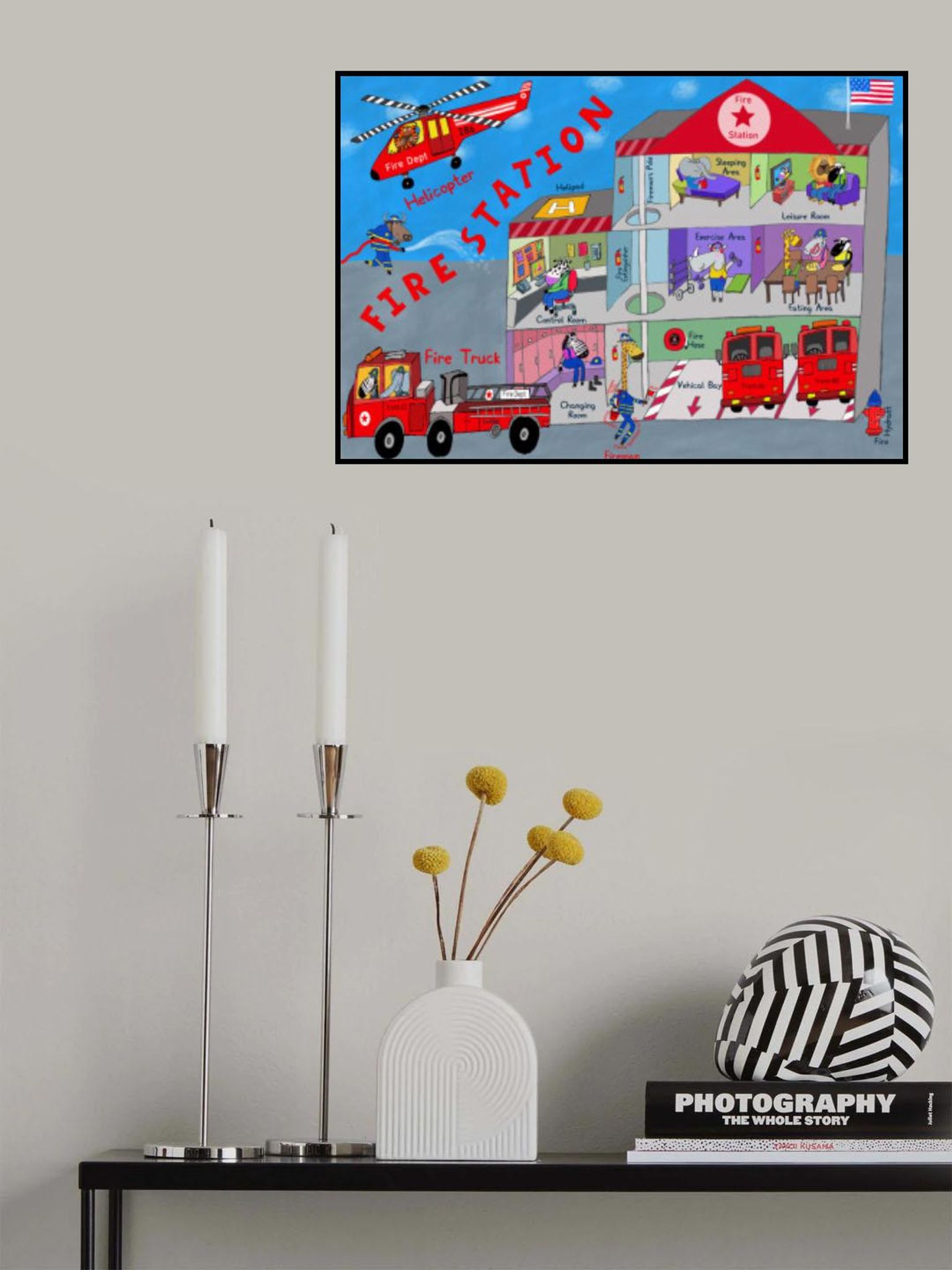 Firemen and the Fire Station by Artist Carla Daly