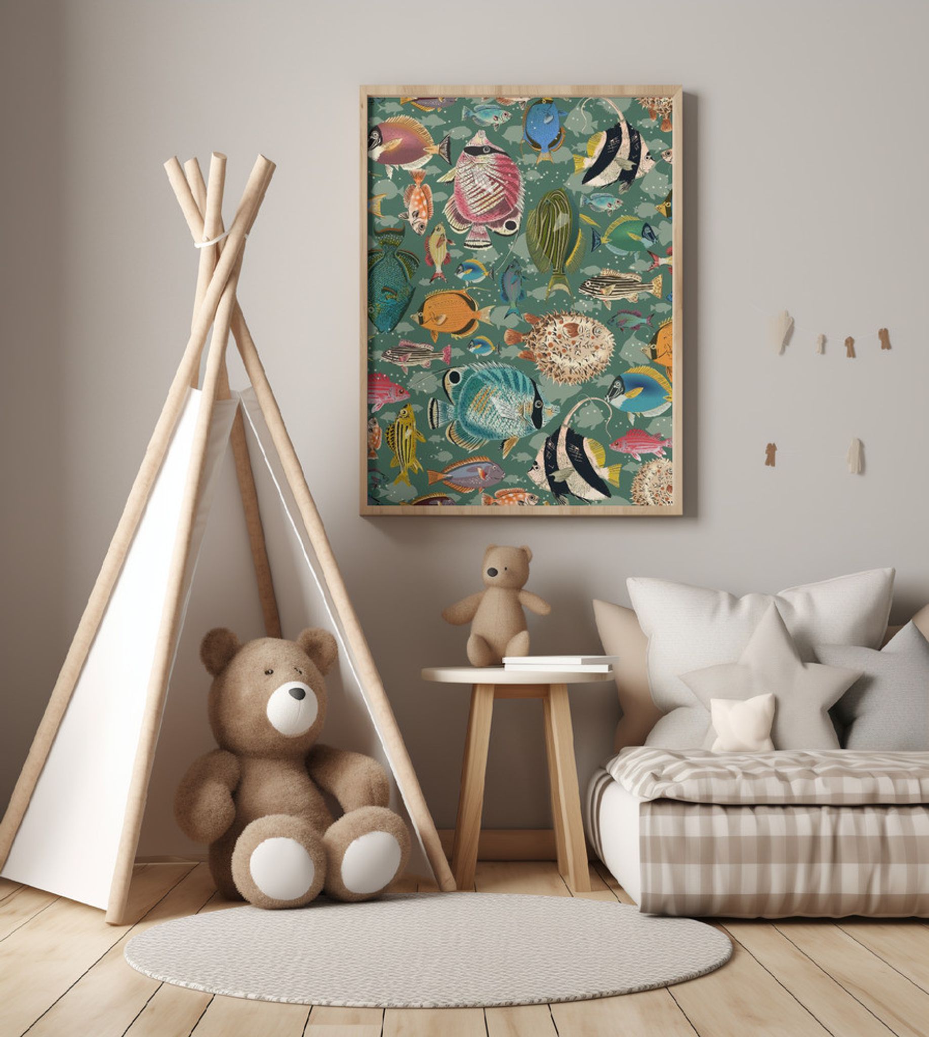 Fishes everywhere teal pattern