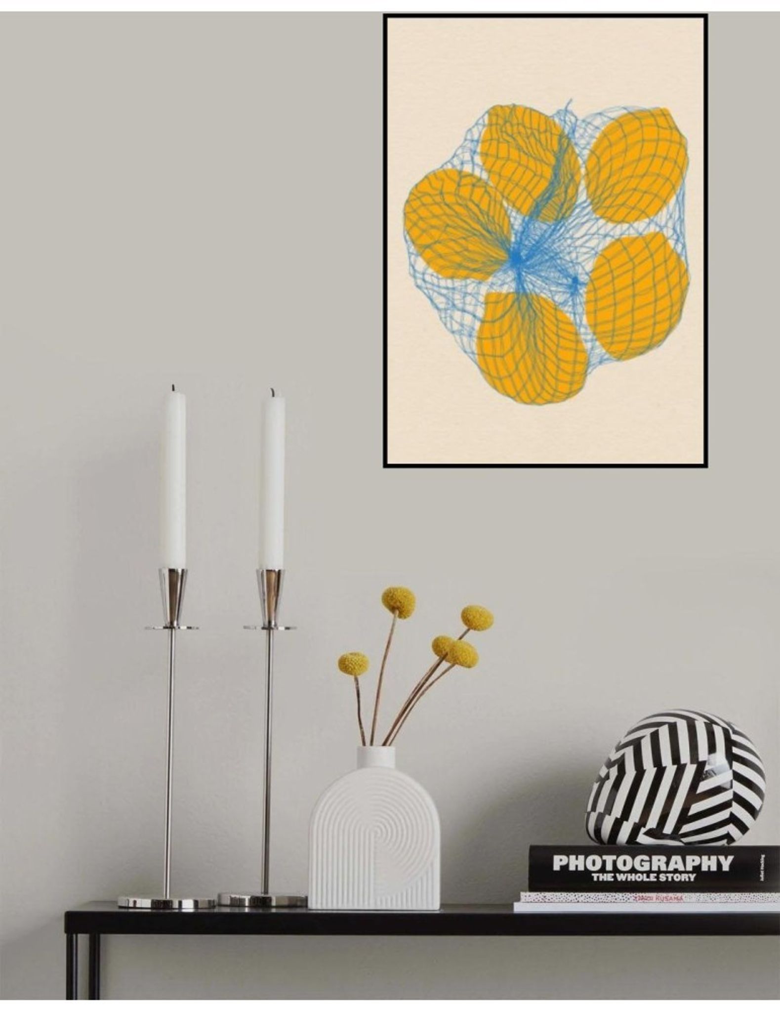Five Lemons In A Net Bag är en poster av bildskaparen Rosi Feist. Postern har en Porträtt orientering. En härlig bild i kategorin Illustration i storleken 8268x5906 px. Alla våra posters trycks på ett 200 grams matt premiumpapper med en slät finish för en förstklassig känsla. Se, njut och upplev denna högklassiga poster på din vägg hemma.