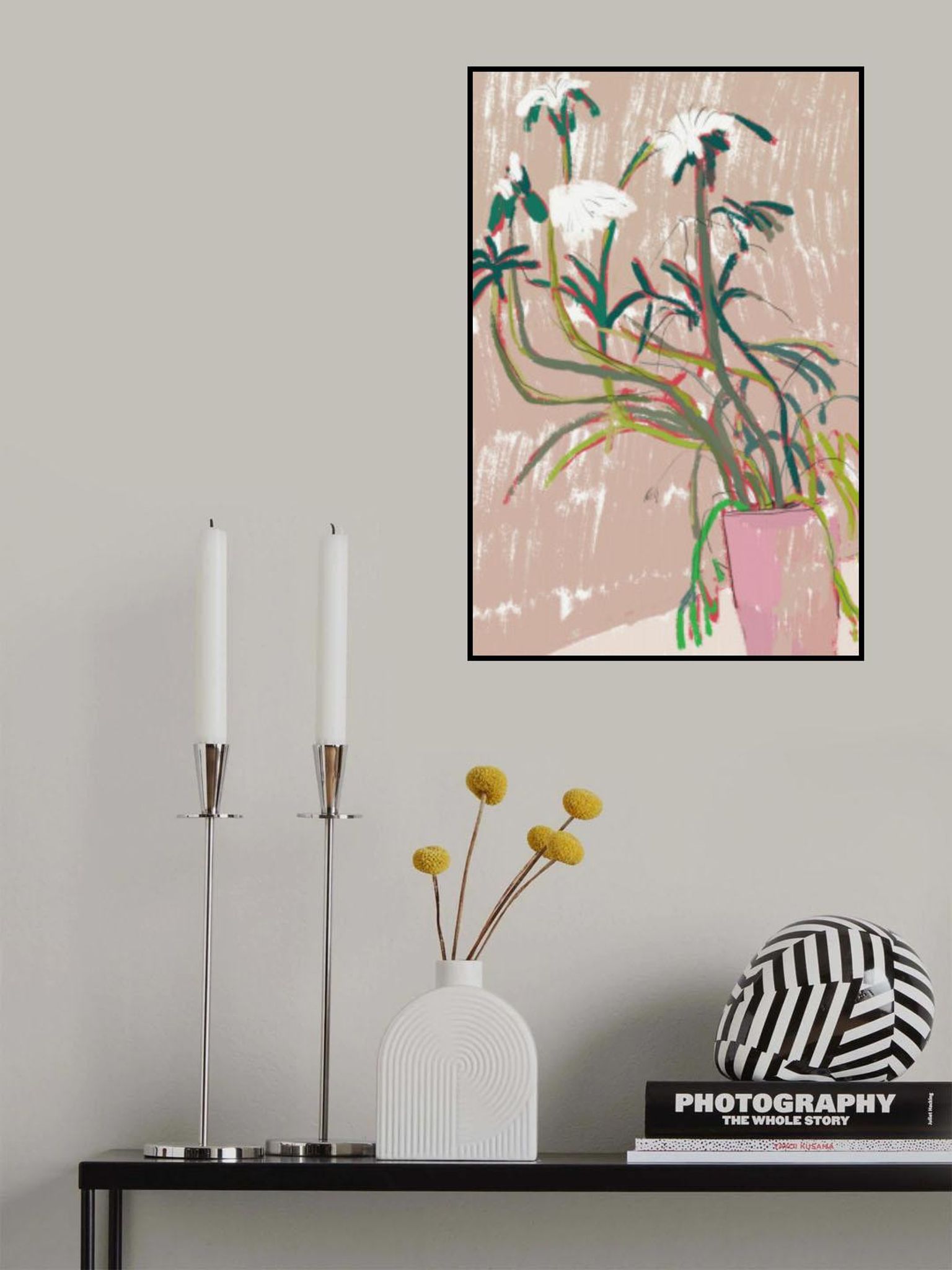Floral Arrangement In A Pink Vase