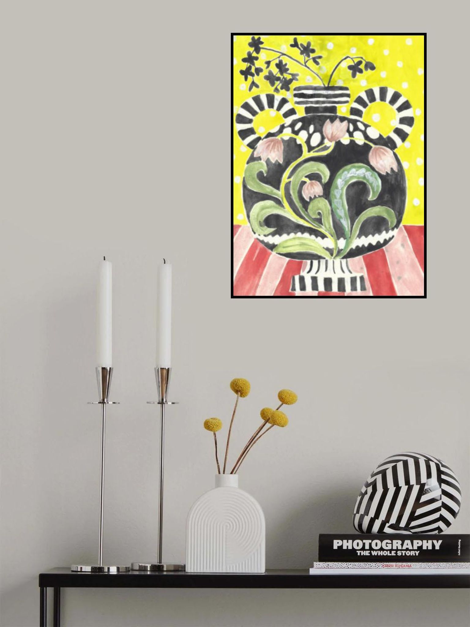 Folksy Greek Vase On Striped Table