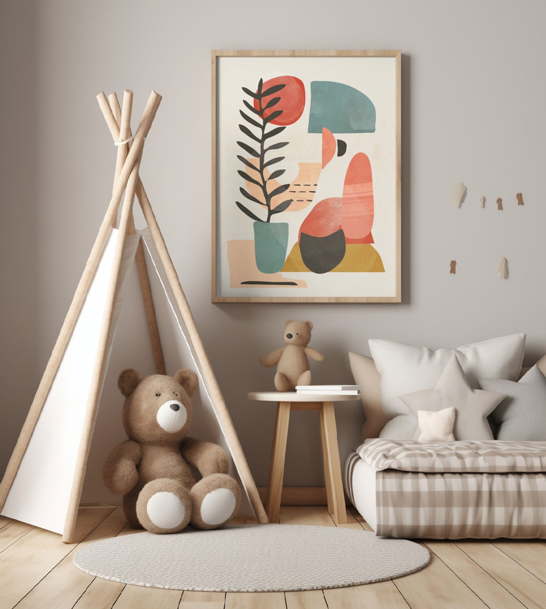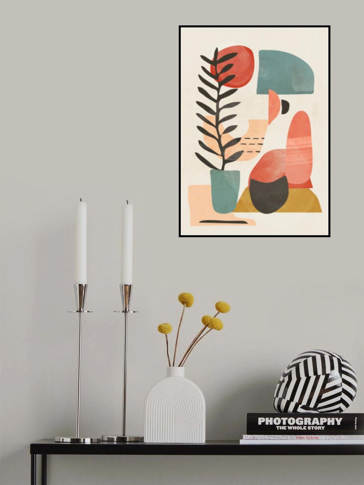Geometric Shapes And A Stylized Plant,