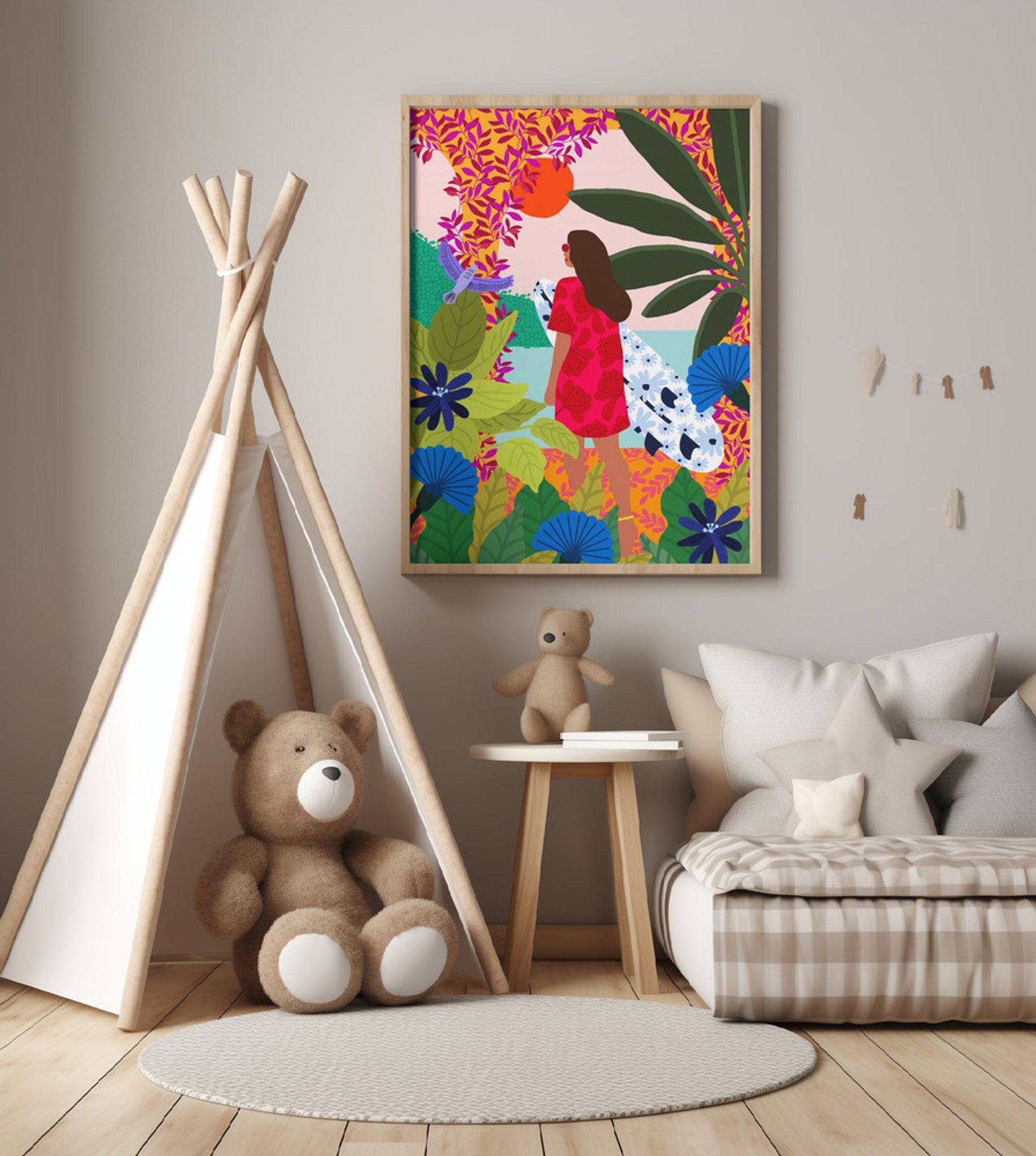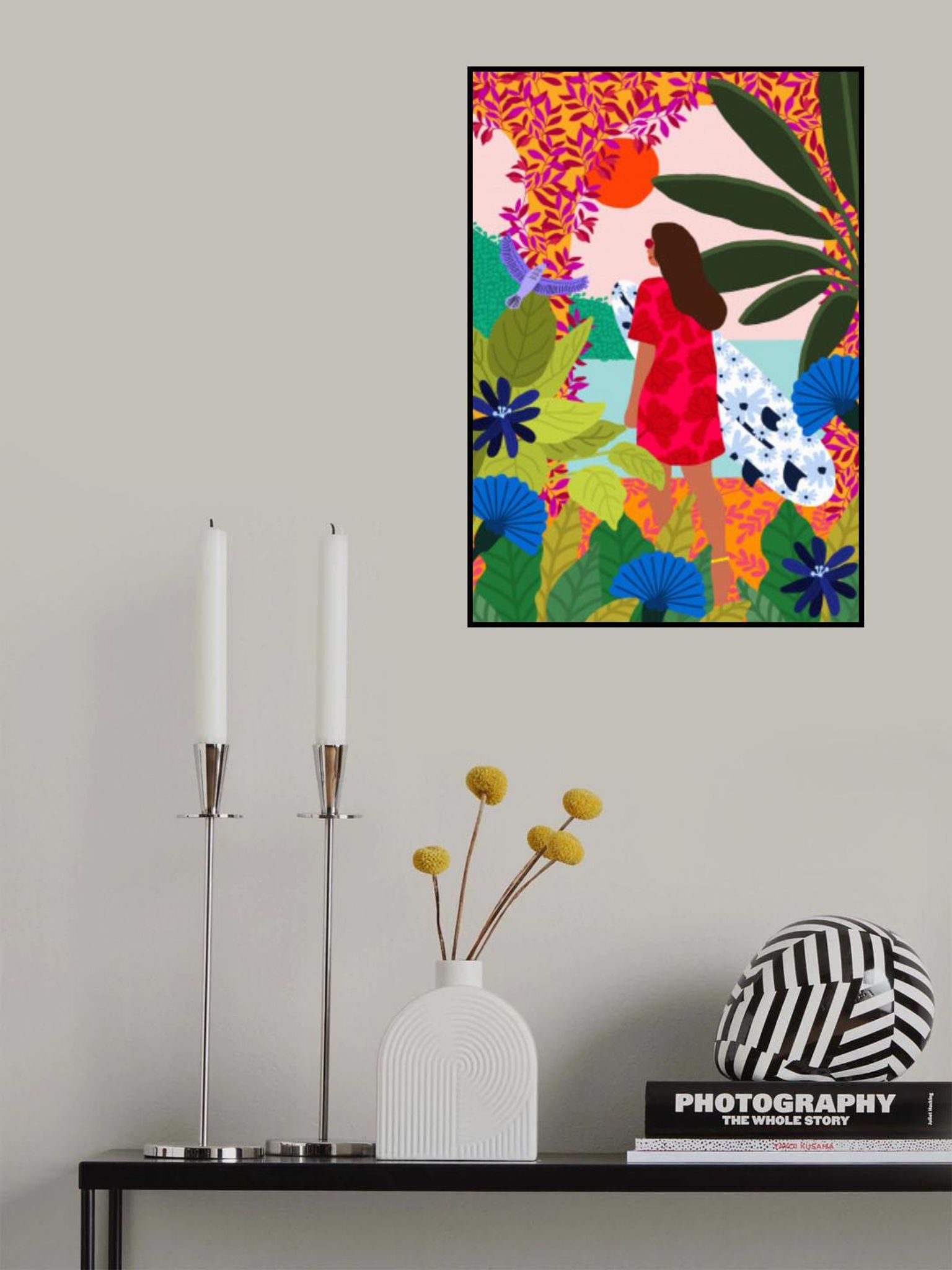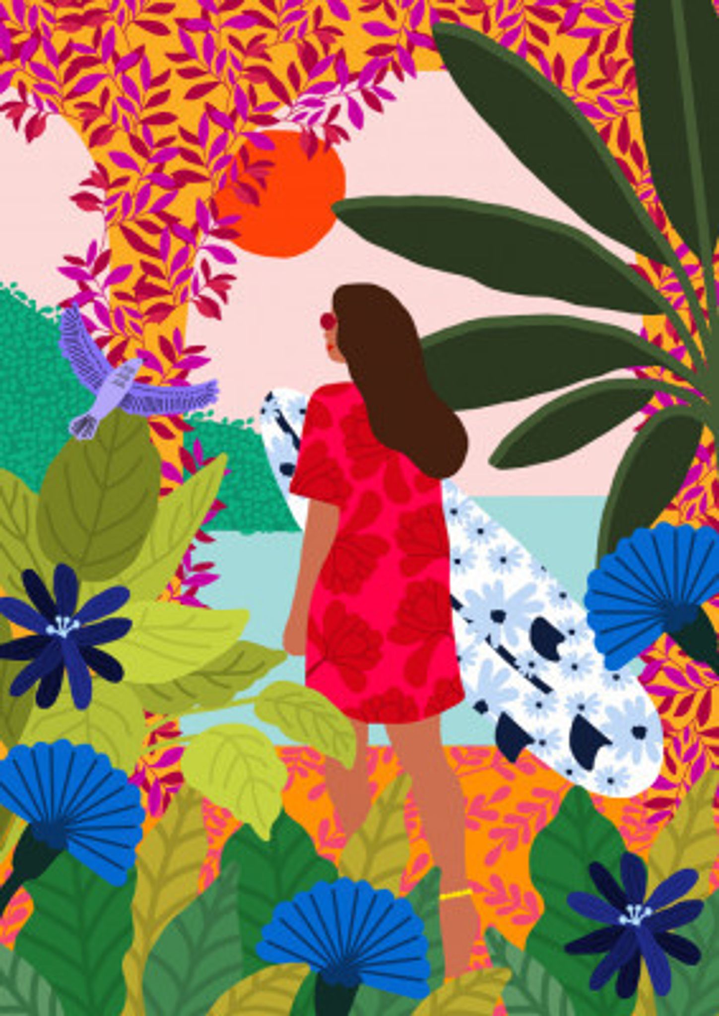 - Biografi: Rafaela Mascaro är en hyllad designer från São Paulo, Brasilien, känd för sina kraftfulla illustrationer som innehåller naturliga och botaniska element. Hennes arbete väver sömlöst in kvinnors berättelser i landskapet, slår samman mänskliga former med organisk omgivning på ett evocativt sätt. I Mascaros konst, fungerar naturen som en berättande partner, förbättra teman av kvinnlighet, motståndskraft och harmoni. De sammanflätande vinrankor, blad och blommor tyder på en mytisk enhet mellan kvinnor och natur. Genom sin raffinerade stil, Mascaro inbjuder publiken att reflektera över kvinnors berättelser samtidigt fira skönheten i den naturliga världen.