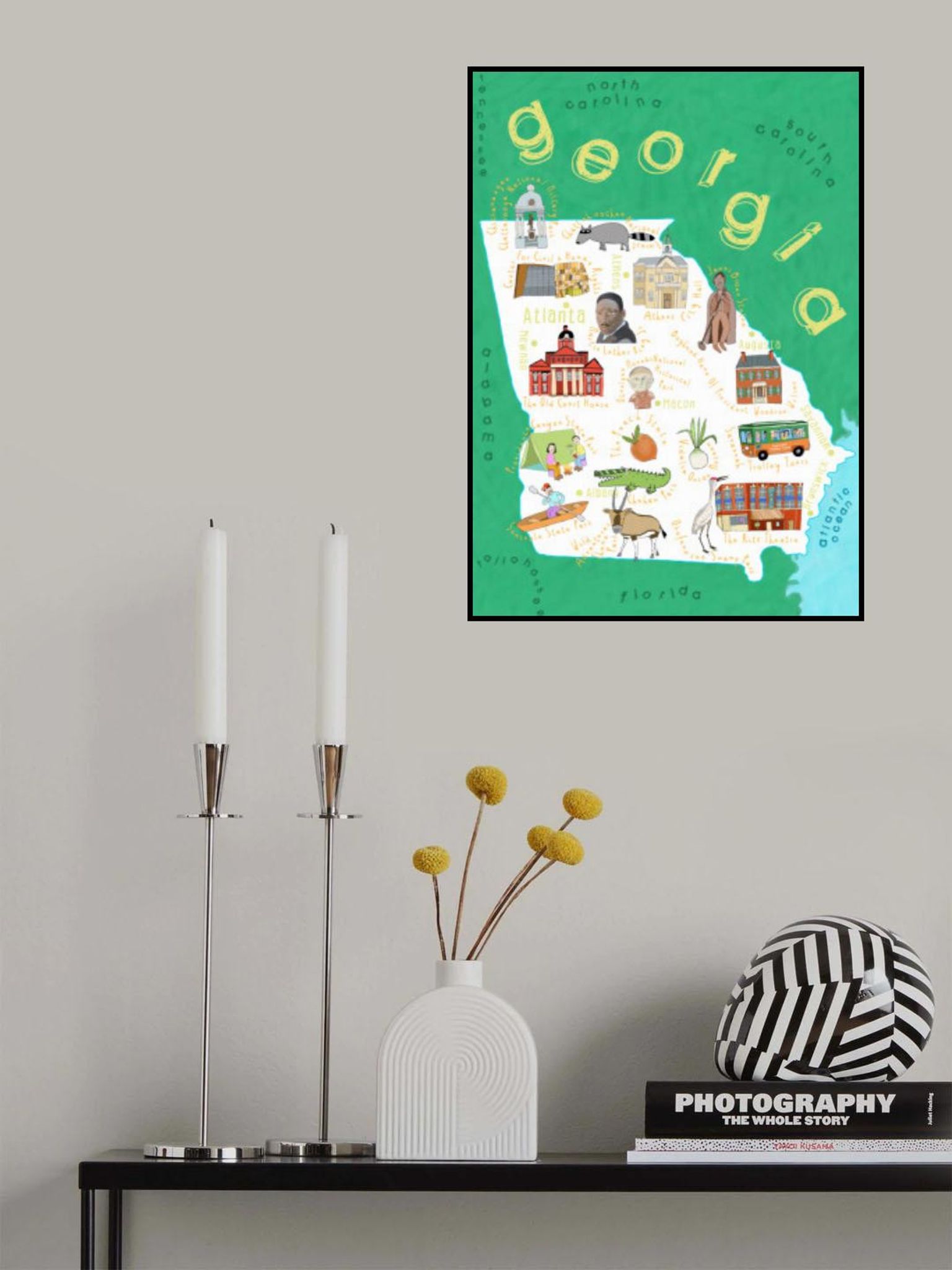 Illustrated Map of Georgia State by Artist Carla Daly