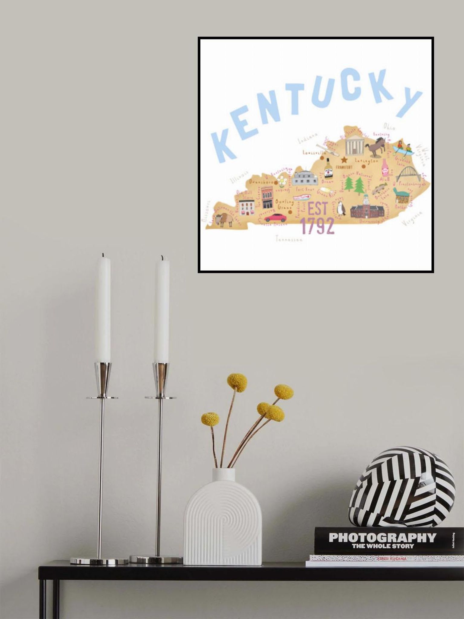 Illustrated Map of Kentucky by Artist Carla Daly