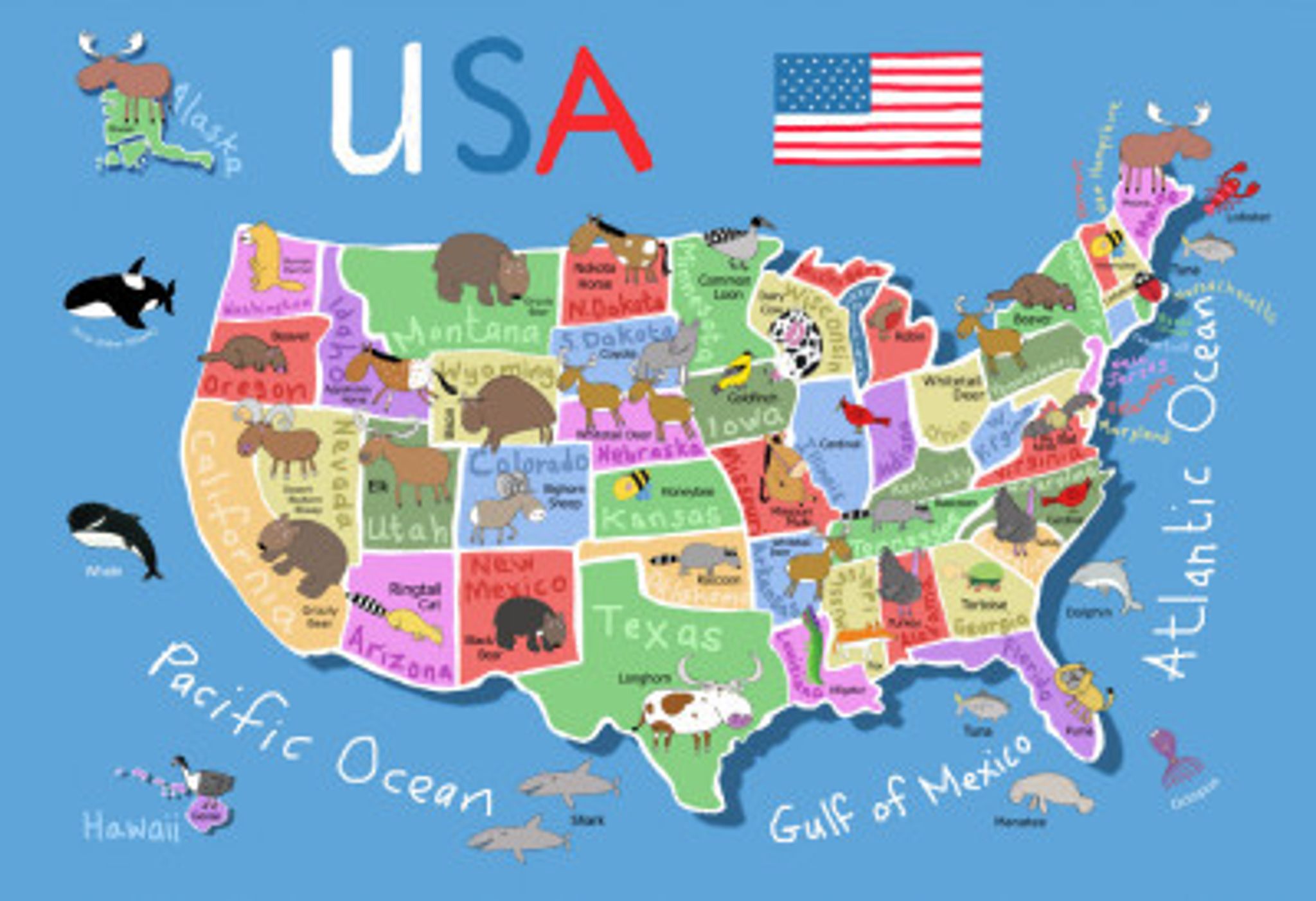 Illustrated Map of United States of America by Carla Daly