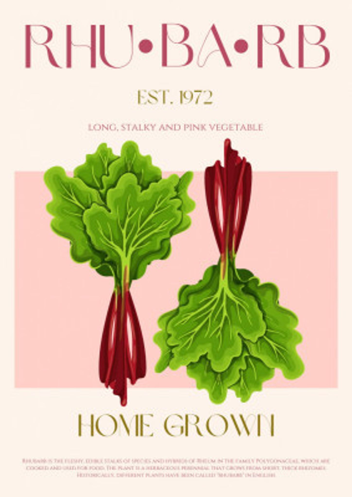 Illustrated Rhubarb With Vibrant Pink Stalks