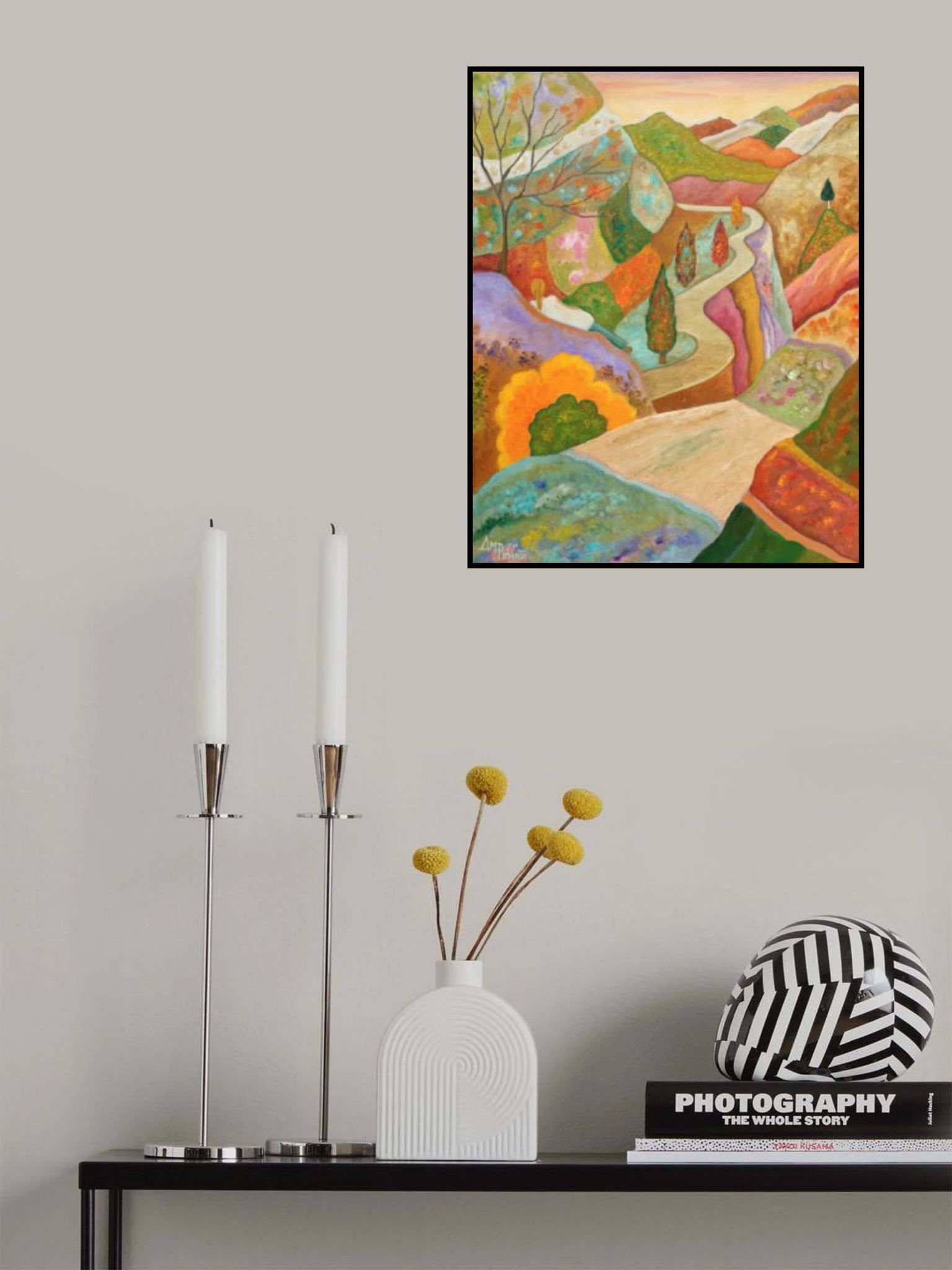 - Biografi: Ángeles M Pomata Ángeles M Pomata är en framträdande konstnär baserad i Níjar, där de hisnande sjölandskap Cabo de Gata Natural Park inspirerar hennes arbete. En tidigare klinisk psykolog i Madrid, Ángeles övergick till en kreativ karriär och upptäckte hennes passion för måleri. Självlärd och driven av experiment, kom hon till konst som en besökare och stannade. Specialiserad på oljemålning, Ángeles portfölj belyser skönheten i naturlandskap genom livfulla färgsammansättningar och konceptdrivna bitar inspirerade av naturen. Hennes arbete har varit med i Women in Art 278 (Florida) och Basel galleri Go For Art och är en del av privata samlingar över Europa, Singapore, Australien, och USA. Blanda tradition med innovation, Ángeles M Pomata fortsätter att utforska nya tekniker och teman i spanska oljemålning. Upptäck hennes senaste skapelser på ampomata.com eller följa henne på X och Instagram på @ampomata.