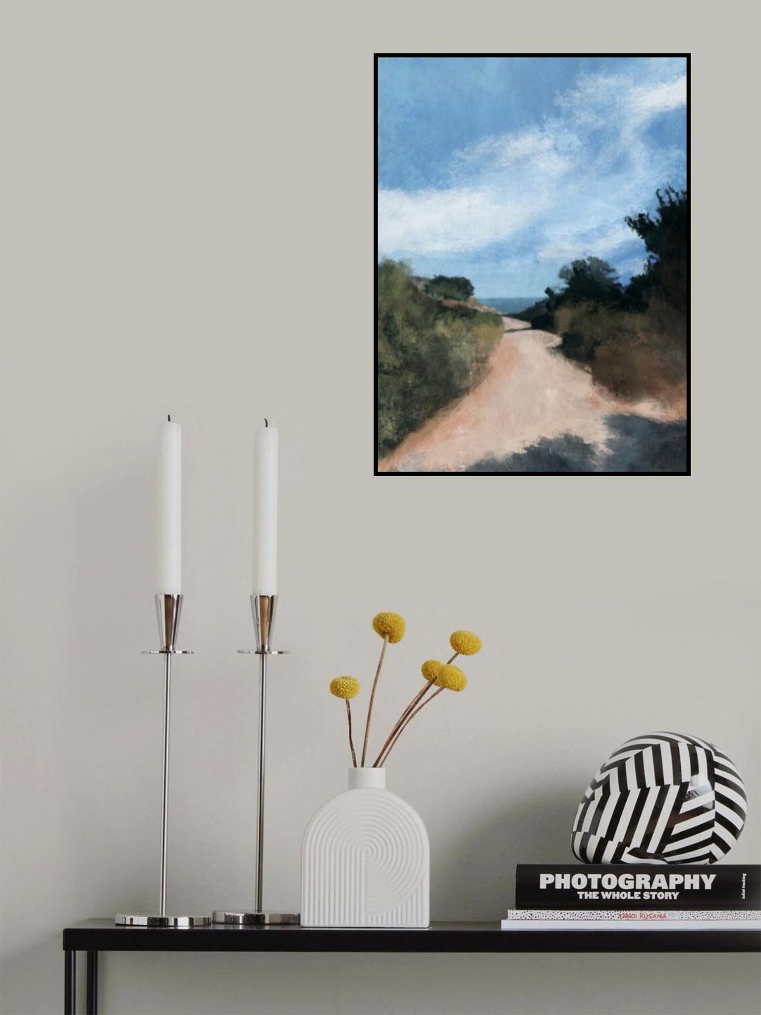 - Biografi: I den natursköna regionen Devon i södra England, hantverk konstnären varje mästerverk från sin tankfullt utformade hem studio. Med en passion för landskap och samtida konst, blandar han olika tekniker med olja, akryler, digitala, och blandade medier för att skapa verk som fängsla och inspirera. Hans konst pryder samlingarna av topp inredning designers och konstkonsulter över hela världen och ofta väljs av hem iscensättning proffs och presenteras i TV och filmproduktioner för sin slående dragningskraft. Inspirerad av sin farfar, började konstnärens resa i barndomen och har blomstrat till en ändlös utforskning av färg, penna, och innovation, drivs av en gränslös nyfikenhet. Omgiven av Devons hisnande landskap och dramatiska kust vistas, Dan finner en oändlig källa till inspiration. Komplett till enkelhet och vägleds av en minimalistisk strategi, utnyttjar han kraften av abstraktion för att infundera varje skapelse med djup, känsla, och en distinkt vision.