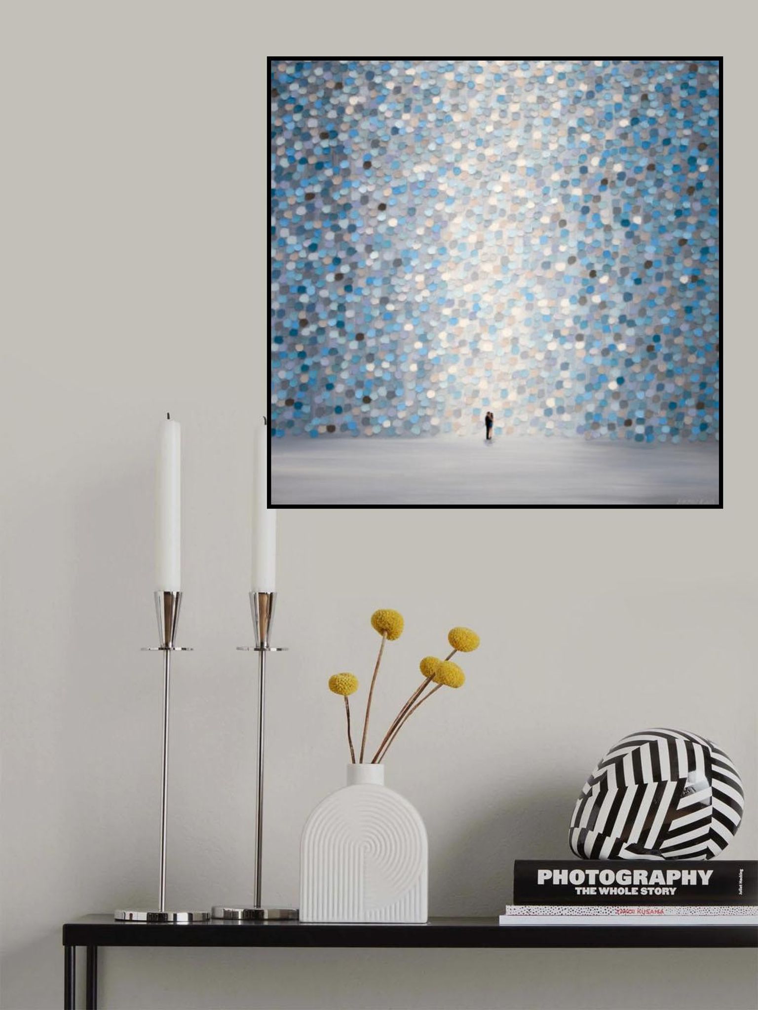 - Biografi: Född i Ryssland, Ekaterina Ermilphina bor och arbetar nu i New Jersey. Hon växte upp i Jalta, där hon studerade vid School of Art of F. Vasiliev, examen 1991. 1992 flyttade hon till Sankt Petersburg och förtjänade sin MFA från State Art and Industry Academy 1998. Stadens skönhet och kultur inspirerade henne att måla stadslandskap. År 2005 flyttade hon till USA, och hennes verk har varit med i solo- och grupputställningar på platser som The New York Museum of Contemporary Art, The Hunter Museum of American Art, och Artspace Warehouse Los Angeles. Noterbara samlare inkluderar Kelly Clarkson. Ekaterina abstrakta målningar kombinerar tillämpa och ta bort oljemålning med en palettkniv. Hennes stadsbilder är inspirerade av skylines som de av Manhattan och Chicago. Genom att fokusera på hur ljus interagerar med ämnet, skapar hon energifyllda landskap och porträtt, ritar tittare in i verket genom sammanslagningen av otaliga prickar av färg.
