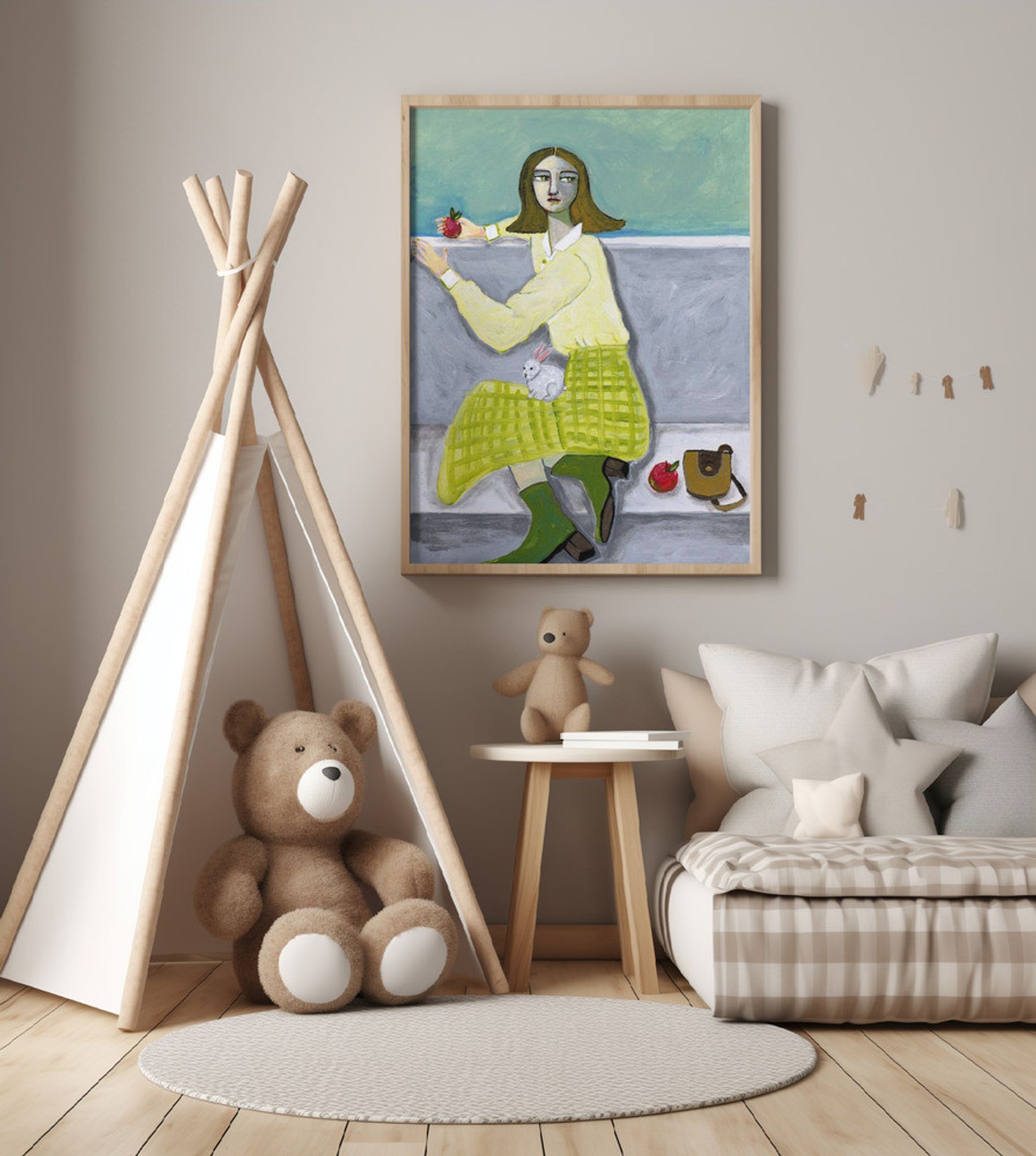 Lady and the Rabbit with apple