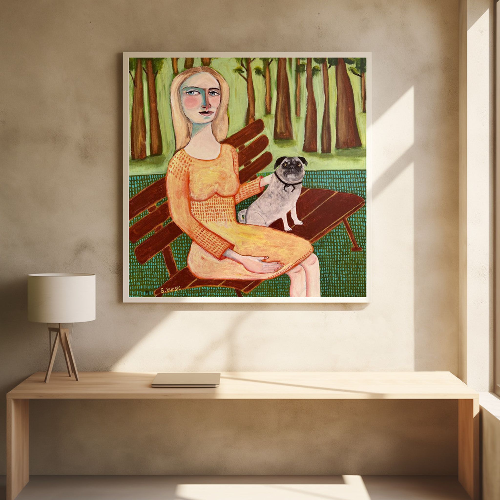 - Biografi: Sharyn Bursic är en självlärd, naiv bildlig konstnär vars verk fångar skönheten och humorn i vardagen. Med ett lekfullt och intuitivt tillvägagångssätt, skapar Sharyn livfulla, känsloladdade målningar med hjälp av en rad olika medier, inklusive akvarell, akryl och olja. Hennes arbete är fyllt med nyckfulla men hjärtliga skildringar av vardagliga ögonblick – oavsett om det är en katt som ligger på knä, människor som njuter av en lugn kväll med ett glas vin, eller djur fångas i en uppriktig, avslappnad stund. Sharyns distinkta stil ger en känsla av värme och charm till bekanta scener, ofta infunderad med en subtil känsla av humor. Hennes figurativa verk är både intima och tillgängliga, inbjudande tittare att se de extraordinära i de enkla, dagliga aktiviteter som definierar våra liv. Förutom hennes bildliga bitar, utforskar hon också abstrakt målning, där hennes lekfulla användning av färg och form fortsätter att återspegla den glädje hon finner i världen runt henne.