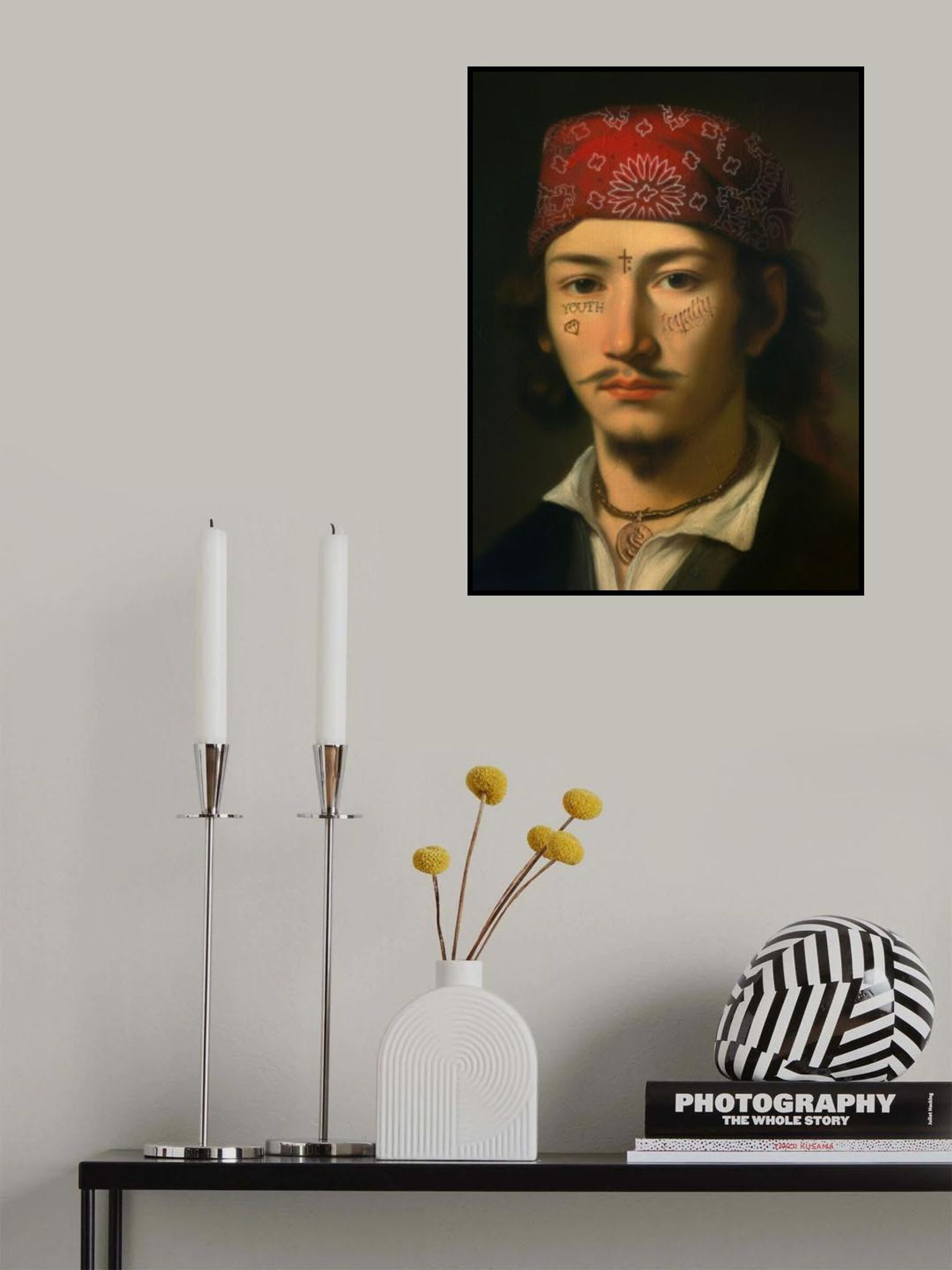 - Biografi: Ledd av Nando López, en digital konstnär baserad i Barcelona som började sin karriär i kända byråer och senare specialiserade på modeindustrin projekt, denna serie digitala illustrationer och collage spelar med out-of-context element för att provocera ett leende och gnista reflektion. Bitarna i Dikhotomy är ett intrång i bekanta, en sammandrabbning av epoker, tekniker och stilar blandas utan att be om tillstånd, skapa en överraskande och surrealistisk effekt. Inspirerad av popkultur och gatukonst, det förvandlar kompositioner till färska, humor-laden visuella landskap. Varje bild är en medveten parodi av konstvärlden men också en inbjudan att tänka om hur vi ser på saker. Här, den klassiska och moderna coexisten, konst skrattar åt sig själv, och betraktaren dras till en visuell historia som inte behöver logik för att vara fascinerande.