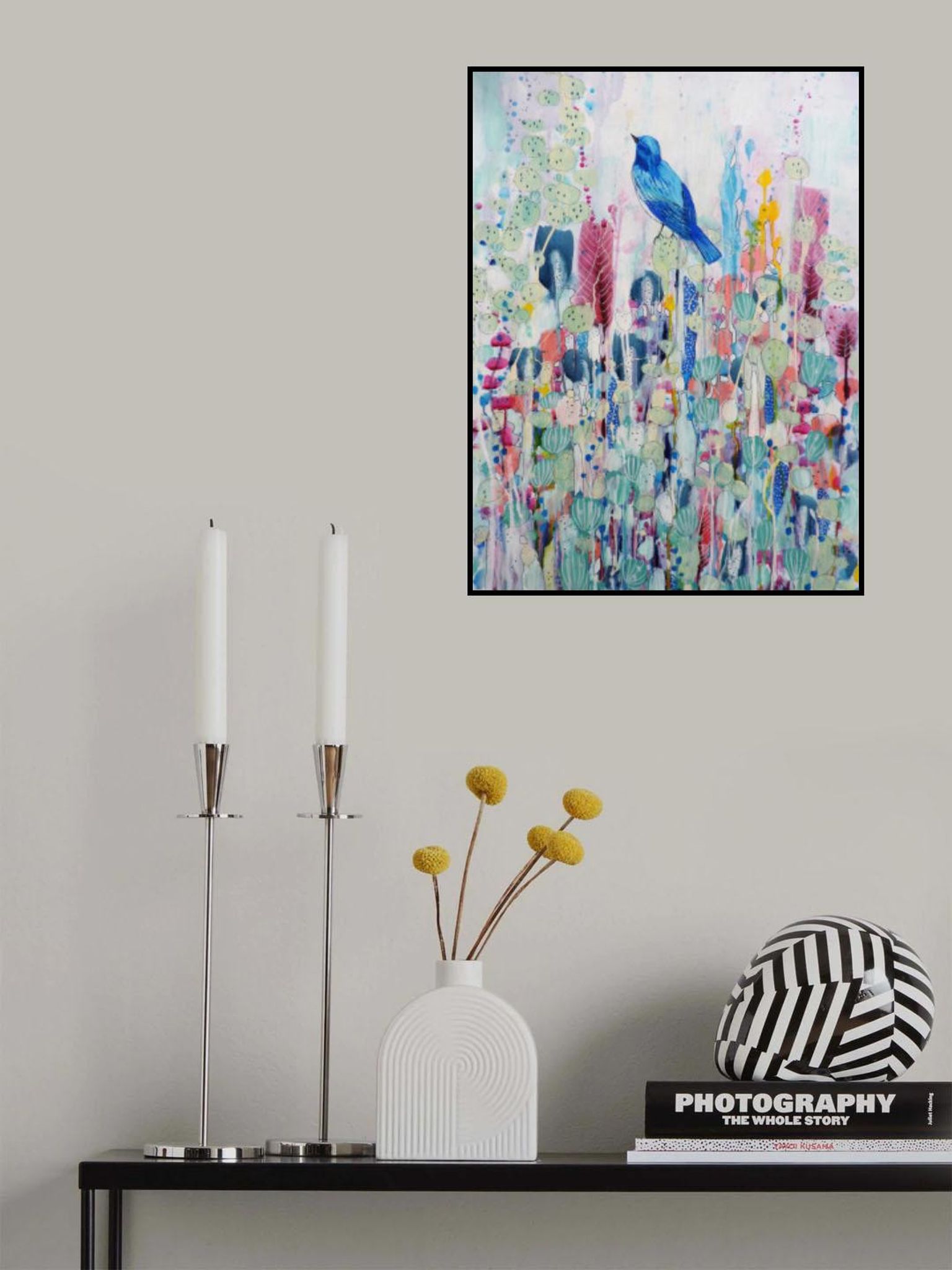 - Biografi: Sylvie Demers är en skicklig konstnär vars verk blandar abstraktion med naturinspirerade element. Med en djup passion för färg och form, skapar Demers fascinerande konstverk som väcker lugn och glädje. Hennes stil definieras av flytande penselarbete, drömska färgpaletter, och ett känsligt samspel av ljus och skugga, med material som akvarell och bläck. Inspirerad av skönheten i den naturliga världen, Demers infuserar sina verk med förtrollning och lugn. Hennes evocativa målningar ofta har blommiga motiv och landskap, inbjuder tittare till en fredlig, meditativ plats. Genom sin konst, försöker hon förmedla den djupa kopplingen mellan mänskliga känslor och den omgivande miljön, vilket lämnar ett bestående intryck på samlare över hela världen. Hennes kreativa process är djupt rotad i hennes lust för liv och andlighet. Med en passion för färger kontraster och natur, ser hon målning som ett lekfullt spel, inbjudande tittare att gå med i.