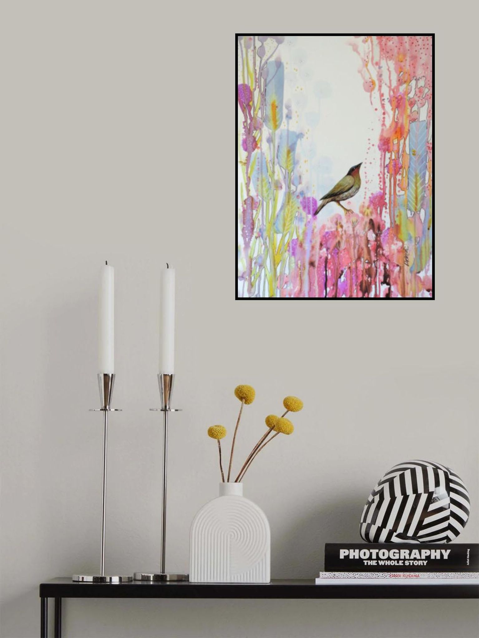 - Biografi: Sylvie Demers är en skicklig konstnär vars verk blandar abstraktion med naturinspirerade element. Med en djup passion för färg och form, skapar Demers fascinerande konstverk som väcker lugn och glädje. Hennes stil definieras av flytande penselarbete, drömska färgpaletter, och ett känsligt samspel av ljus och skugga, med material som akvarell och bläck. Inspirerad av skönheten i den naturliga världen, Demers infuserar sina verk med förtrollning och lugn. Hennes evocativa målningar ofta har blommiga motiv och landskap, inbjuder tittare till en fredlig, meditativ plats. Genom sin konst, försöker hon förmedla den djupa kopplingen mellan mänskliga känslor och den omgivande miljön, vilket lämnar ett bestående intryck på samlare över hela världen. Hennes kreativa process är djupt rotad i hennes lust för liv och andlighet. Med en passion för färger kontraster och natur, ser hon målning som ett lekfullt spel, inbjudande tittare att gå med i.