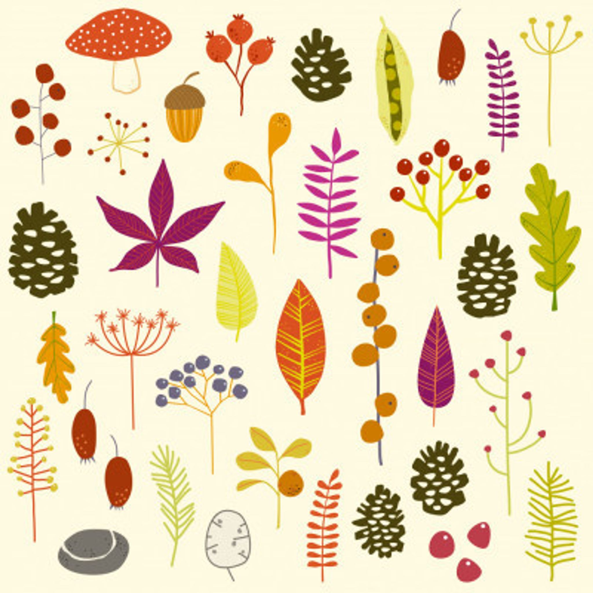 Leaves Pods Berries And Toadstools