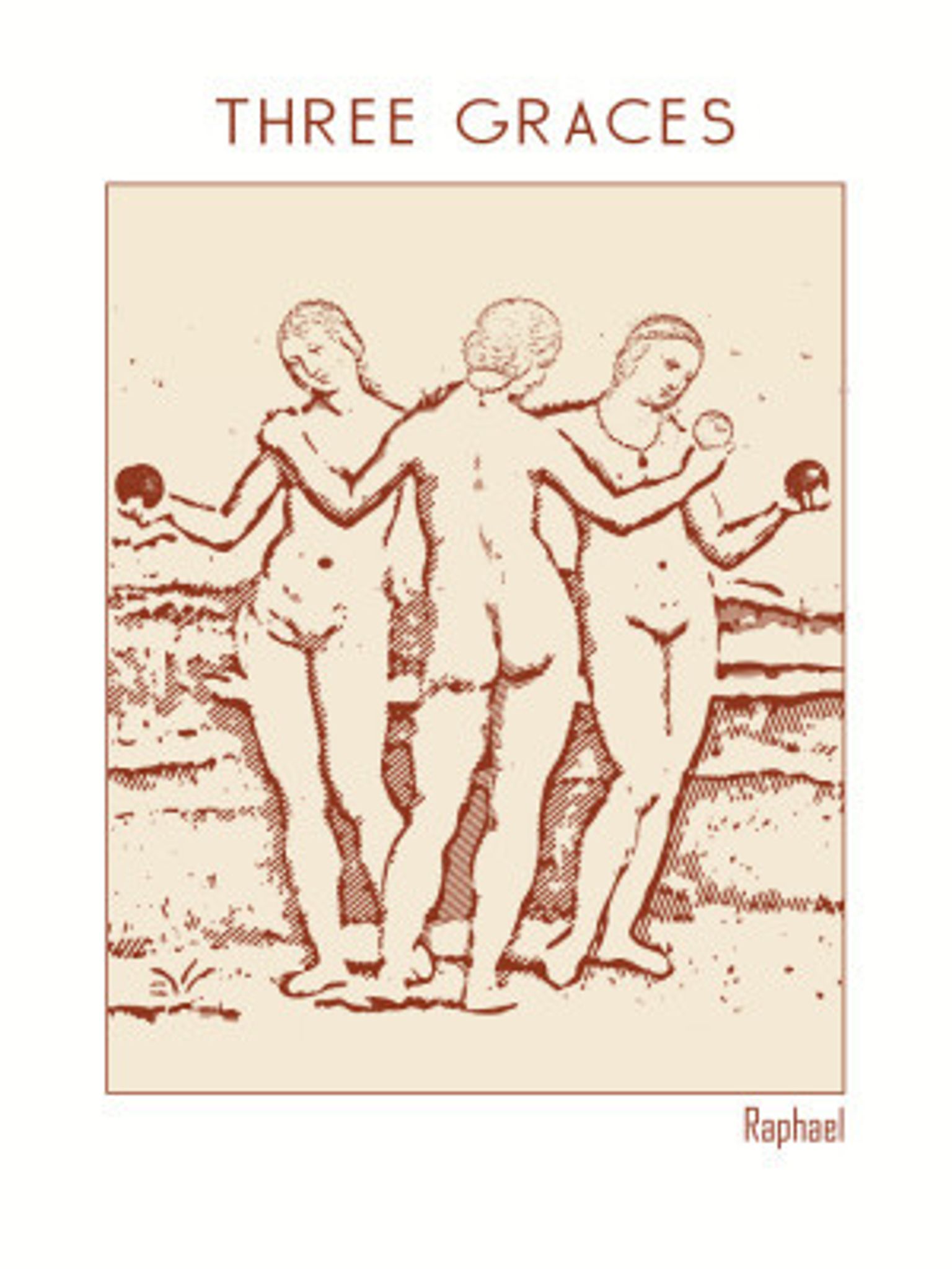 Line Art Minimalist – Three Graces By Raphael (c 1503–1505)