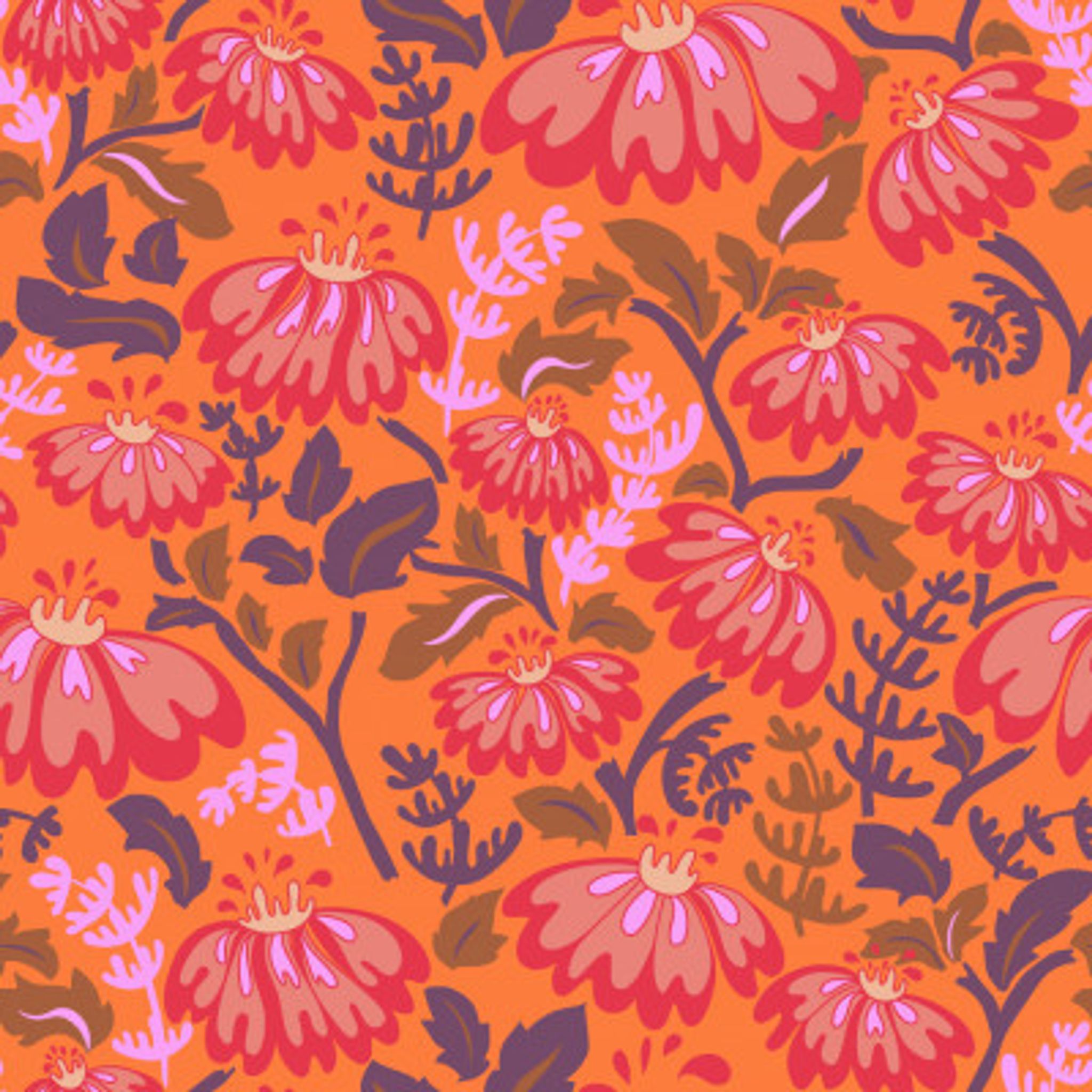 Maximalism 70s Retro Flowers Energy Orange pattern